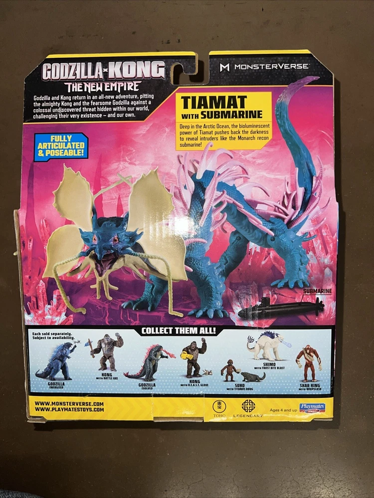 Get ready for an epic showdown between the world's most iconic monsters with the 2024 Playmates Godzilla X Kong Monsterverse TIAMAT set. This set includes a detailed submarine figure and showcases the incredible attention to detail that Playmates is known for. With this set, fans of the Godzilla and King Kong franchises can come together and immerse themselves in the thrilling world of Monsterverse. Featuring stunning articulation and a unique design, this set is perfect for collectors and fans of all ages. Made in China with the highest quality materials, this set is sure to become a staple in any collection. Don't miss out on the opportunity to own this incredible Godzilla X Kong Monsterverse TIAMAT set.