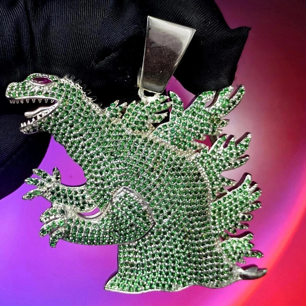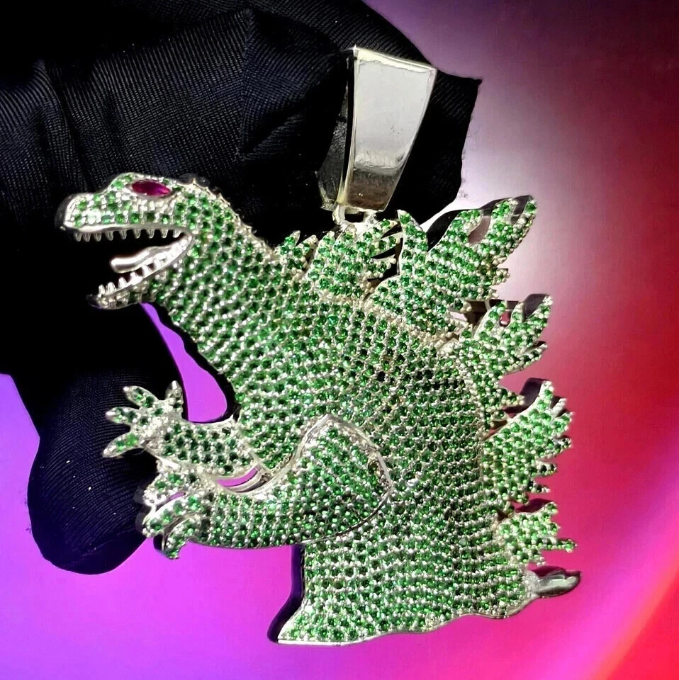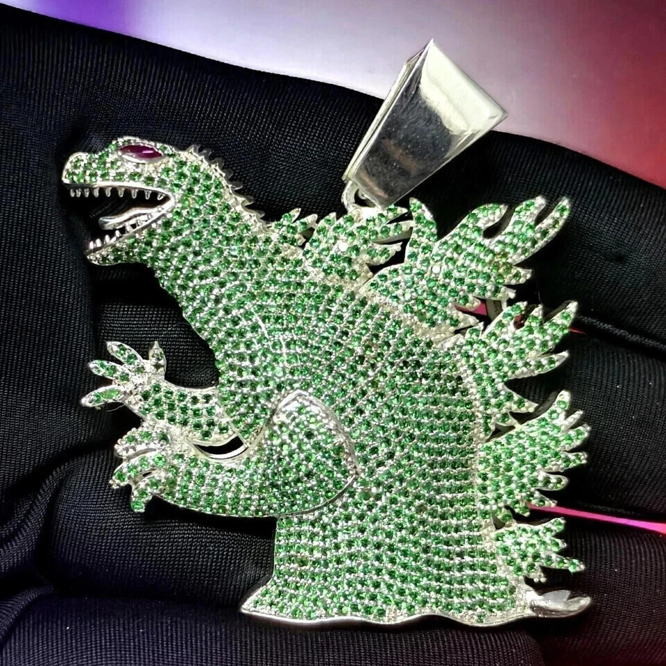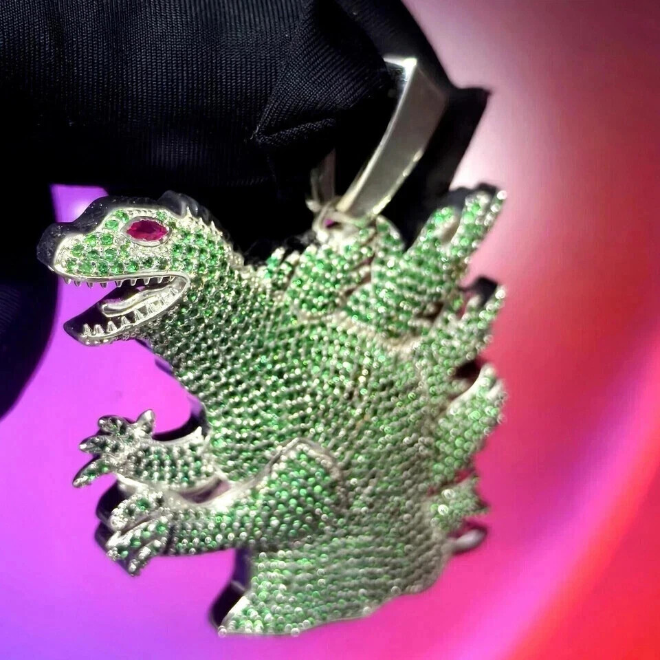 2Ct Lab-Created Emerald Godzilla Pendant in 14K White Gold with 18-Inch Chain