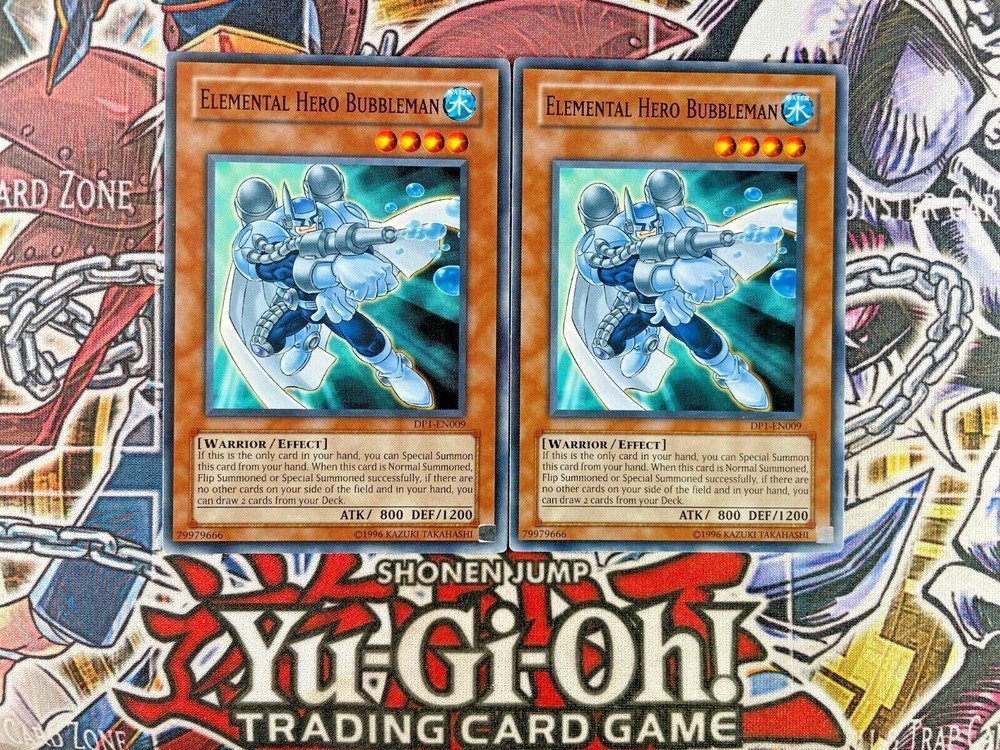 2x Elemental Hero Bubbleman | Common | DP1-EN009 | Yu-Gi-Oh! Near Mint: minimal signs of damage. May have a minimal scratch, blemish, etc. Free Shipping! We provide SUPER FAST SHIPPING If there are questions, comments, or concerns, contact us!