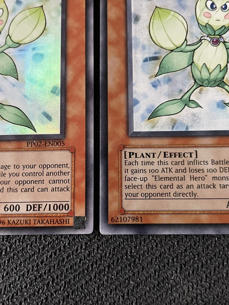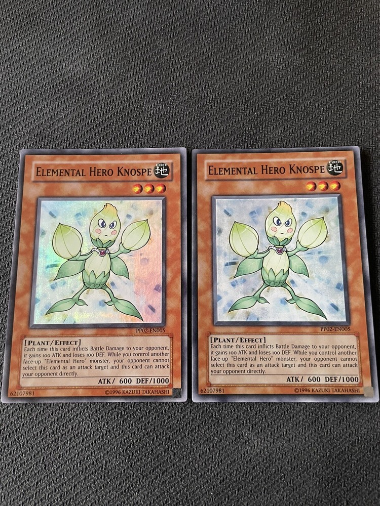 2x YuGiOh! - Elemental Hero Knospe PP02-EN005 Super Rare Unlimited Edition LP. Both cards condition is Lightly played The card will be shipped securely and the card will come in a penny sleeve and a top loader with additional protection