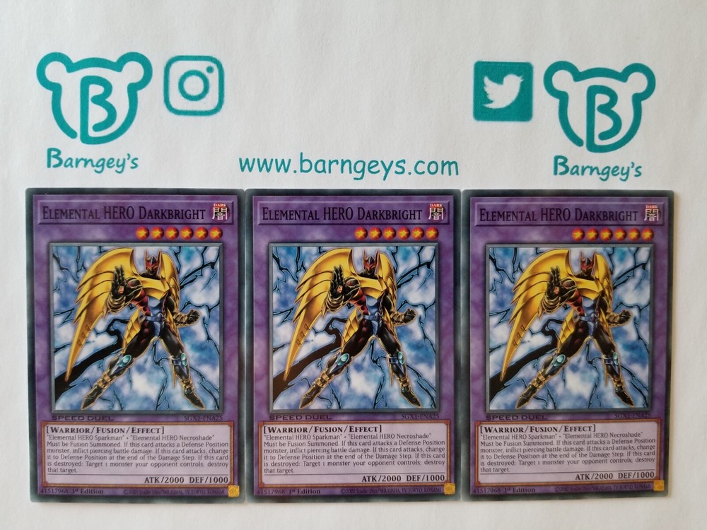 Got my Elemental HERO Darkbright playset fast and in perfect condition! Super affordable shipping, and the seller was super responsive when I had questions. Love adding these to my HERO deck—great value for a classic common. Will definitely be checking out Barngey’s singles again!