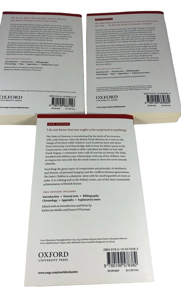 Welcome to our Ebay Store Fast Free Tracked Postage Delve into the rich and intricate world of Anthony Trollope with this special edition set of 'Barchester Towers' and 'Framley Parsonage' from the Chronicles of Barsetshire series. Published by Oxford University Press in 1939, these novels offer a captivating journey through the Victorian era, vividly bringing to life the quaint cathedral town of Barchester. This small leather-bound collection is a treasure for both young adults and adults alike, who appreciate the nuances of historical and popular fiction. The books are presented in English, the original language of publication, and come complete with a map feature that adds an extra layer of immersion. A timeless piece of literature, this duo is perfect for readers who enjoy well-crafted stories set in a bygone era. Whether you're revisiting these classics or discovering them for the first time, Trollope's masterful storytelling is sure to enchant. These books are in very good gently read pre-loved condition which may show minor signs of wear which may include small marks, yellowing, foxing and shelf wear along the edges of the books, texta or pen marks , slight fraying to hems & seams and slight fading or creasing. Also may contain p revious owners name on inside cover or marked Ex Libras Please Visit our Ebay Store, we list lots of interesting and sometimes unusual items daily. By purchasing you acknowledge you have read the entire item description and viewed all of the listing photos (these form part of the description and may show blemishes or issues not described). " Pre-owned, see photos for condition and read the description ". I describe all pre-owned clothes / items/ books quality as detailed as possible. If you have any issues when you receive your clothing or items, please message me first. I'm more than happy to help you out if any issues arise. If the item is described as 'Vintage and/or Antique', the buyer should expect some wear. . Please look at the pictures carefully, as they are a large part of my description. We try and describe all items as accurately as possible, however if you do have a question about an item, please feel free to email us before making your purchase Please Visit our Ebay Store, we list items daily I usually accept reasonable offers, I have been an eBay seller and buyer since 2001, 100% feedback rating - check all my ratings and buy with confidence.