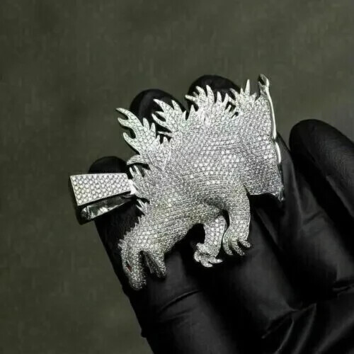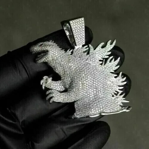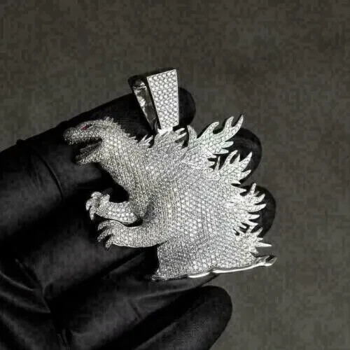 3Ct Round Lab Moissanite Godzilla Pendant in 14K White Gold Plated Silver