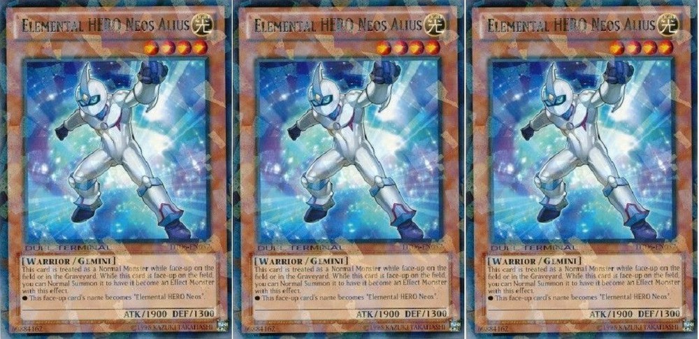 Absolutely thrilled with this playset! The cards arrived in perfect Near Mint condition, just as described—no scratches or bends, super crisp. The Duel Terminal rare foiling looks stunning, and they’re ready for competitive play. Fast shipping and great packaging from Cardboard Duelist. Highly recommend for any Hero deck enthusiast!