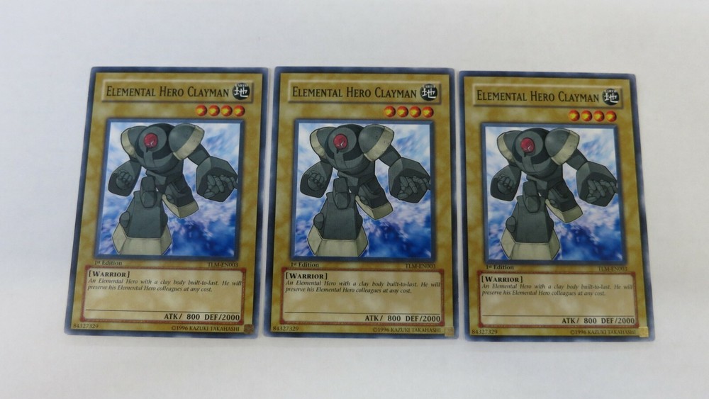 Welcome to Great_Deals_On_Collectibles.We are in the retail hobby sector and have been since 1991.We sell sportscards,gaming cards,comic books,action figures,plush toys and various other hobby related items.We have been on Ebay since 1999.We try to make buyers experience on EBAY as satisfying as possible.Our feedback on Ebay speaks volumes.Every item we have up for auction is LIVE and ready to be shipped upon payment. If you have any questions feel free to contact us,thanks for showing interest. YUGIOH You are bidding on 3x FIRST 1ST EDITION ELEMENTAL HERO CLAYMAN TLM-EN003 MONSTER COMMON YUGIOH UNPLAYED