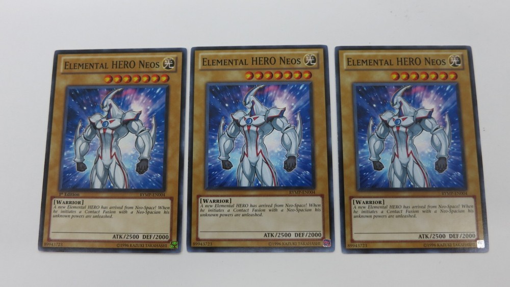 Welcome to Great_Deals_On_Collectibles.We are in the retail hobby sector and have been since 1991.We sell sportscards,gaming cards,comic books,action figures,plush toys and various other hobby related items.We have been on Ebay since 1999.We try to make buyers experience on EBAY as satisfying as possible.Our feedback on Ebay speaks volumes.Every item we have up for auction is LIVE and ready to be shipped upon payment. If you have any questions feel free to contact us,thanks for showing interest. YUGIOH You are bidding on 3x ( 2 1ST / 1x UNL ) ELEMENTAL HERO NEOS RYMP-EN004 MONSTER COMMON YUGIOH NM