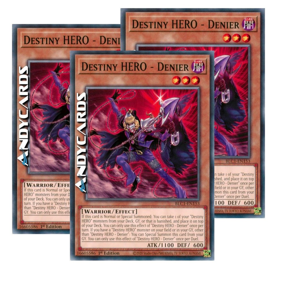 3x DESTINY HERO - DENIER Common 1st Edition BLC1 EN153 Yugioh Card