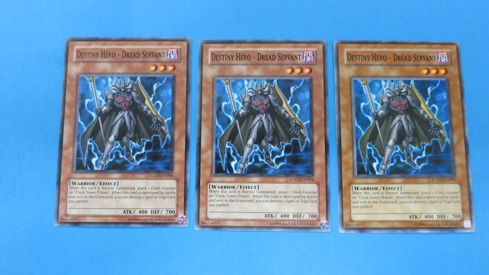 Welcome to Great_Deals_On_CollectiblesUNITES STATESWe are in the retail hobby sector and have been since 1991UNITES STATESWe sell sportscards,gaming cards,comic books,action figures,plush toys and various other hobby related itemsUNITES STATESWe have been on Ebay since 1999UNITES STATESWe try to make buyers experience on EBAY as satisfying as possibleUNITES STATESOur feedback on Ebay speaks volumesUNITES STATESEvery item we have up for auction is LIVE and ready to be shipped upon paymentUNITES STATES If you have any questions feel free to contact us,thanks for showing interestUNITES STATES YUGIOH You are bidding on 3x DESTINY HERO DREAD SERVANT UNLIMITED LODT-EN004 COMMON YUGIOH NM / UNPLAYED