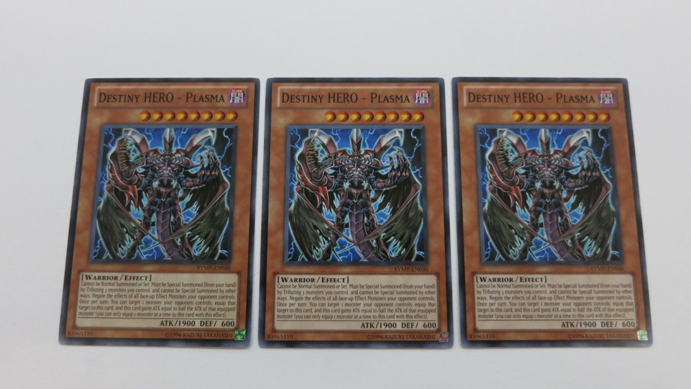 Welcome to Great_Deals_On_Collectibles.We are in the retail hobby sector and have been since 1991.We sell sportscards,gaming cards,comic books,action figures,plush toys and various other hobby related items.We have been on Ebay since 1999.We try to make buyers experience on EBAY as satisfying as possible.Our feedback on Ebay speaks volumes.Every item we have up for auction is LIVE and ready to be shipped upon payment. If you have any questions feel free to contact us,thanks for showing interest. YUGIOH You are bidding on 3x DESTINY HERO PLASMA MONSTER UNLIMITED EDITION RYMP-EN036 COMMON YUGIOH NM