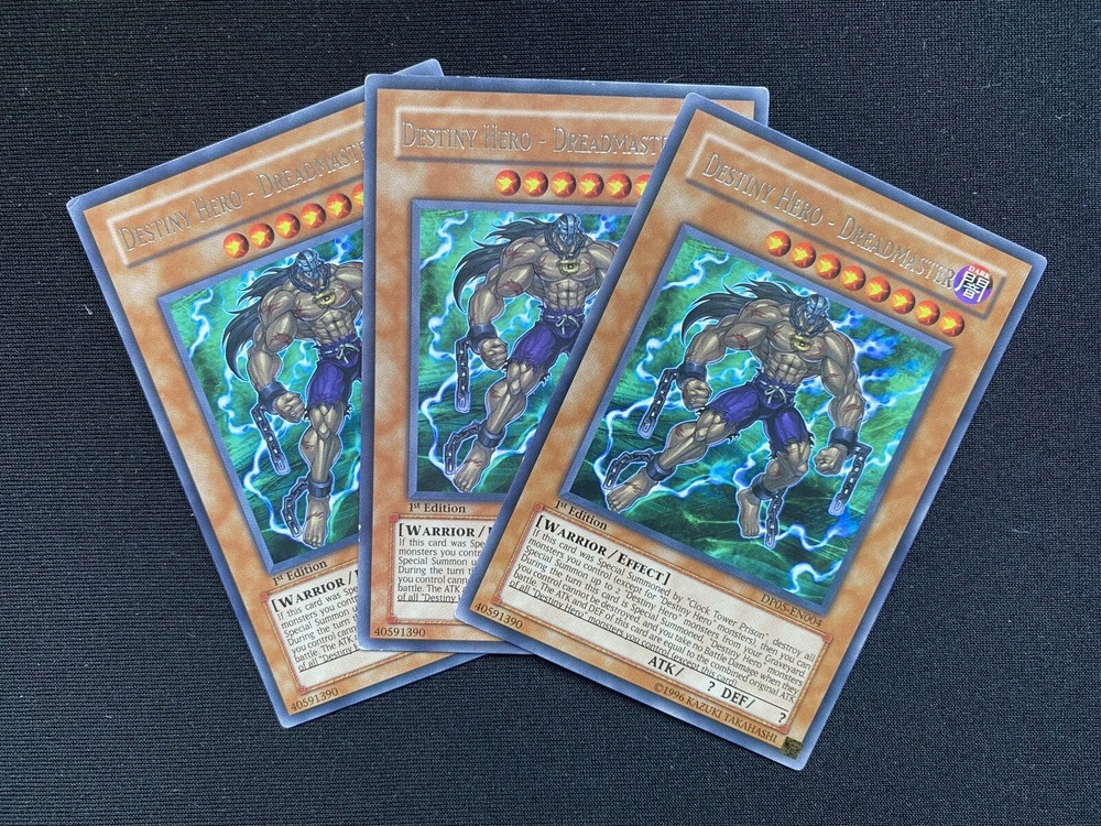 3x DP05-EN004 Destiny Hero - Dreadmaster LP/MP Rare 1st Edition - Yu-Gi-Oh! Card.