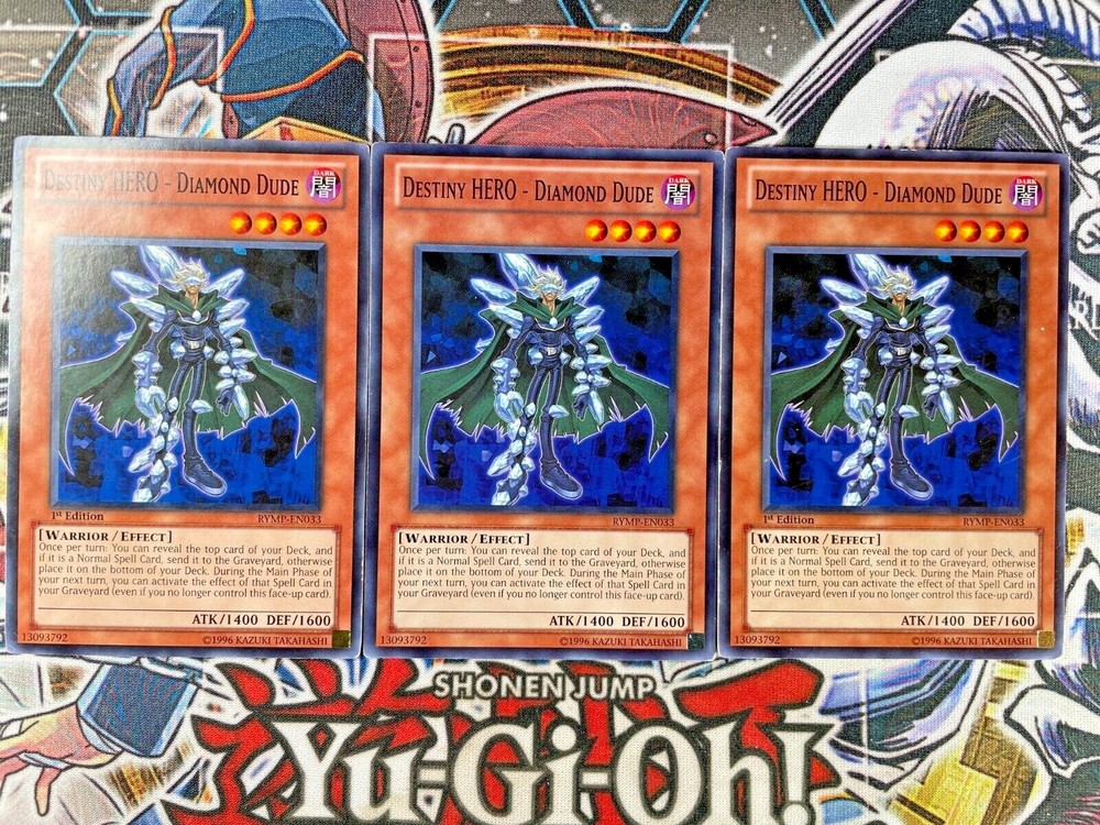 3x Destiny HERO - Diamond Dude | Common | RYMP-EN033 | Yu-Gi-Oh! Near Mint: minimal signs of damage. May have a minimal scratch, blemish, etc. Free Shipping! We provide SUPER FAST SHIPPING If there are questions, comments, or concerns, contact us!