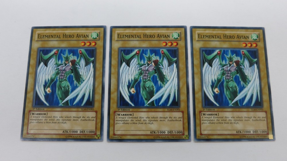 Welcome to Great_Deals_On_CollectiblesUNITES STATESWe are in the retail hobby sector and have been since 1991UNITES STATESWe sell sportscards,gaming cards,comic books,action figures,plush toys and various other hobby related itemsUNITES STATESWe have been on Ebay since 1999UNITES STATESWe try to make buyers experience on EBAY as satisfying as possibleUNITES STATESOur feedback on Ebay speaks volumesUNITES STATESEvery item we have up for auction is LIVE and ready to be shipped upon paymentUNITES STATES If you have any questions feel free to contact us,thanks for showing interestUNITES STATES YUGIOH You are bidding on 3x ELEMENTAL HERO AVIAN TLM-EN001 1ST EDITION COMMON YUGIOH NM UNPLAYED