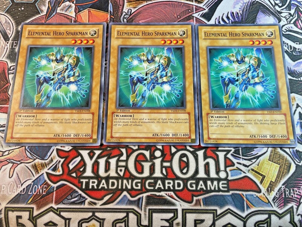 3x Elemental HERO Sparkman | Common | YSDJ-EN008 | Yu-Gi-Oh! Near Mint: minimal signs of damage. May have a minimal scratch, blemish, etc. Free Shipping! We provide SUPER FAST SHIPPING If there are questions, comments, or concerns, contact us!