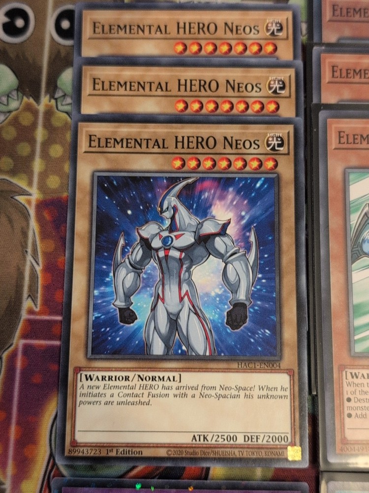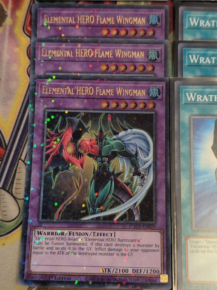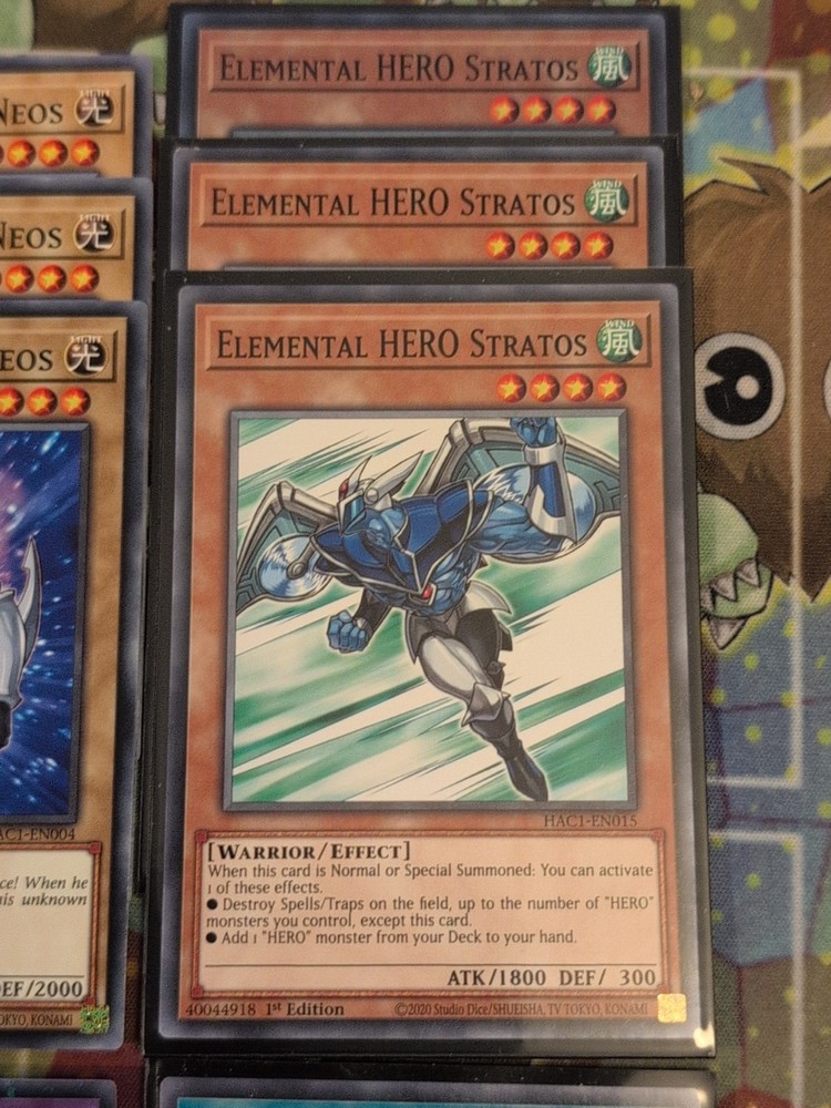 Dive into the strategic gameplay of the Yu-Gi-Oh! TCG with this trio of Elemental HERO cards, featuring Stratos, Neos, Flame Wingman, and Wrath. These effect cards, all of which are 1st Editions, bring a fiery edge to your deck with their Flame creature/monster type. Ideal for collectors and players alike, these cards are a must-have for anyone looking to enhance their game. Each card, HAC1-EN015/004/019/167, showcases the iconic Elemental Hero series, renowned for their powerful abilities and captivating artwork. Whether you're looking to complete your collection or to give your deck a competitive edge, these cards offer both rarity and strength to make a lasting impression in the battle.