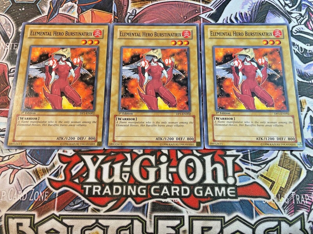 3x Elemental Hero Burstinatrix | Common | DP1-EN002 | Yu-Gi-Oh! Near Mint: minimal signs of damage. May have a minimal scratch, blemish, etc. Free Shipping! We provide SUPER FAST SHIPPING If there are questions, comments, or concerns, contact us!