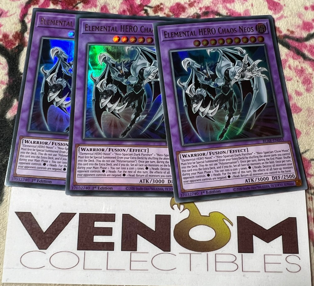 You are buying, exactly as pictured, a playset of EURO Elemental HERO Chaos Neos NM....