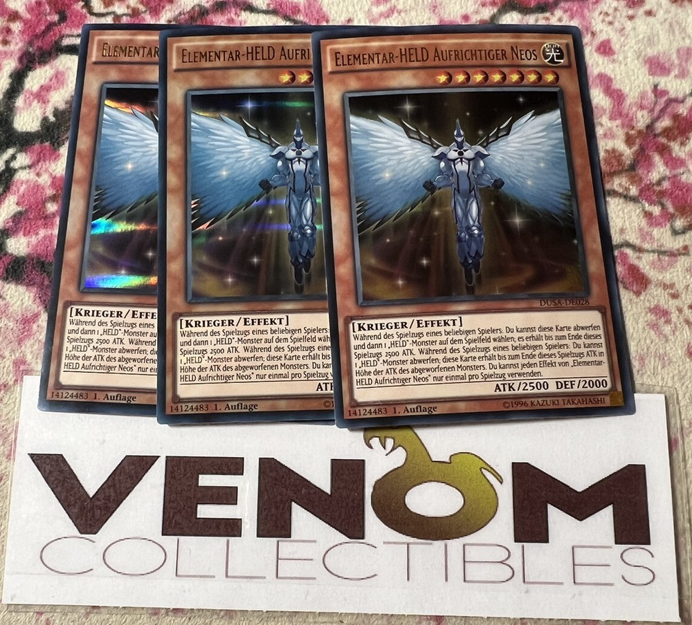 You are buying, exactly as pictured, a playset of GERMAN Elemental HERO Honest Neos NM....