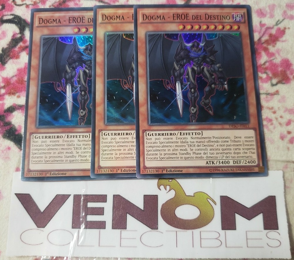 You are buying, exactly as pictured, a playset of ITALIAN Destiny HERO - Dogma NM.