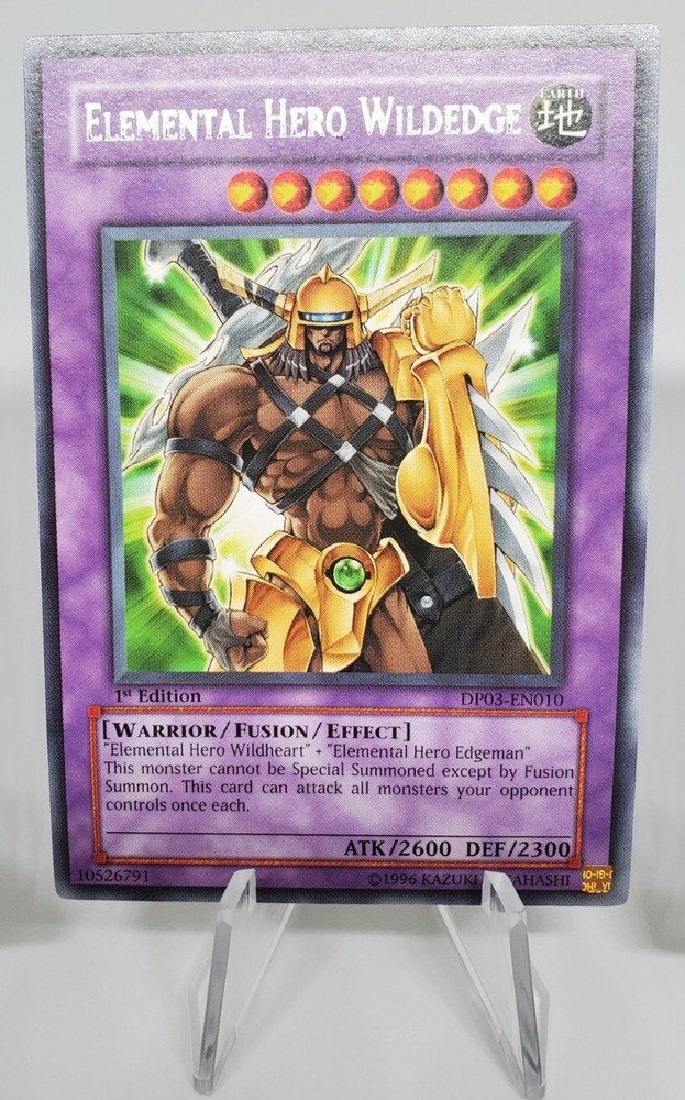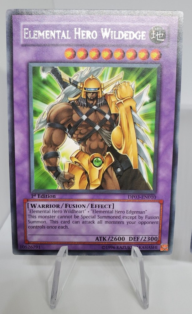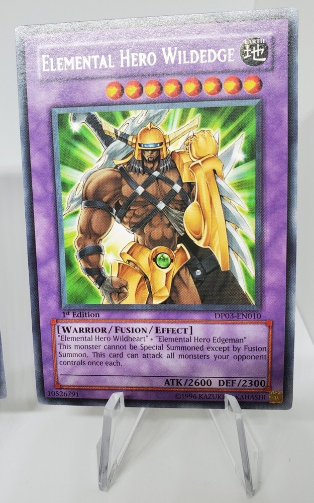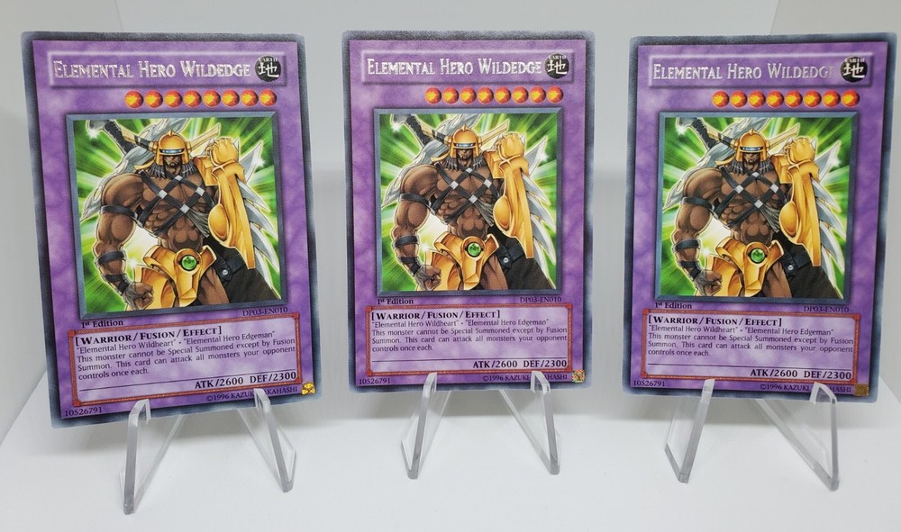 Here you will be bidding on the following: 3x Yu-Gi-Oh! TCG Elemental Hero Wildedge DP03-EN010 RARES in Near Mint/Lightly Played (NM/LP) condition. Excellent condition and quality! Very rare! *3x Misprint (There is no Elemental Hero Edgeman!)* Please make sure to check cards condition well via photos upon purchasing. Additional photos can be provided in message upon request. Thanks for checking out my store! Happy bidding everyone! -moosegaming831