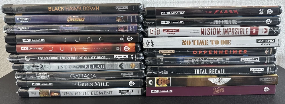 For sale are an assortment of 4K UHD Blu-Ray (2160p) titles, including some original pressings complete with their Cover Slips. Some Items have been opened but were resealed for storage. Discs are all pristine. Buy more for discounts and to save on shipping!!! Condition Notes Mission Impossible (1996) - A n Import from Mexico, however All 4K UHD Discs are Region-Free and will play and display just like its US Counterpart. Missing 1080p Blu-ray Disc, which has been substituted with a DVD (all I had sorry). The Fugitive (1993) - The UHD Disc appears to have been mixed up with an EU Import, however will play and display just like the original US disc. Interstellar (2014) - Was damaged, is a sort of a frankenstein. 4K UHD Disc is Region Free UK Import, Cover is from US Blu-Ray case. Please send me a message if you have questions about any of the "Like New" items, or to request additional pictures. Items are sold as-is with no returns accepted. This includes issues due to unseen flaws underneath plastic wrap, factory defects from case or print, damage from shipping (should not happen given level of packing I shall provide), and irregardless of void digital codes (if included).