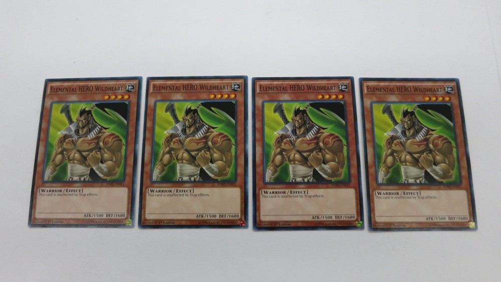 Welcome to Great_Deals_On_Collectibles.We are in the retail hobby sector and have been since 1991.We sell sportscards,gaming cards,comic books,action figures,plush toys and various other hobby related items.We have been on Ebay since 1999.We try to make buyers experience on EBAY as satisfying as possible.Our feedback on Ebay speaks volumes.Every item we have up for auction is LIVE and ready to be shipped upon payment. If you have any questions feel free to contact us,thanks for showing interest. YUGIOH You are bidding on 4x ELEMENTAL HERO WILDHEART SDHS-EN011 1ST EDITION COMMON YUGIOH NM / UNPLAYED