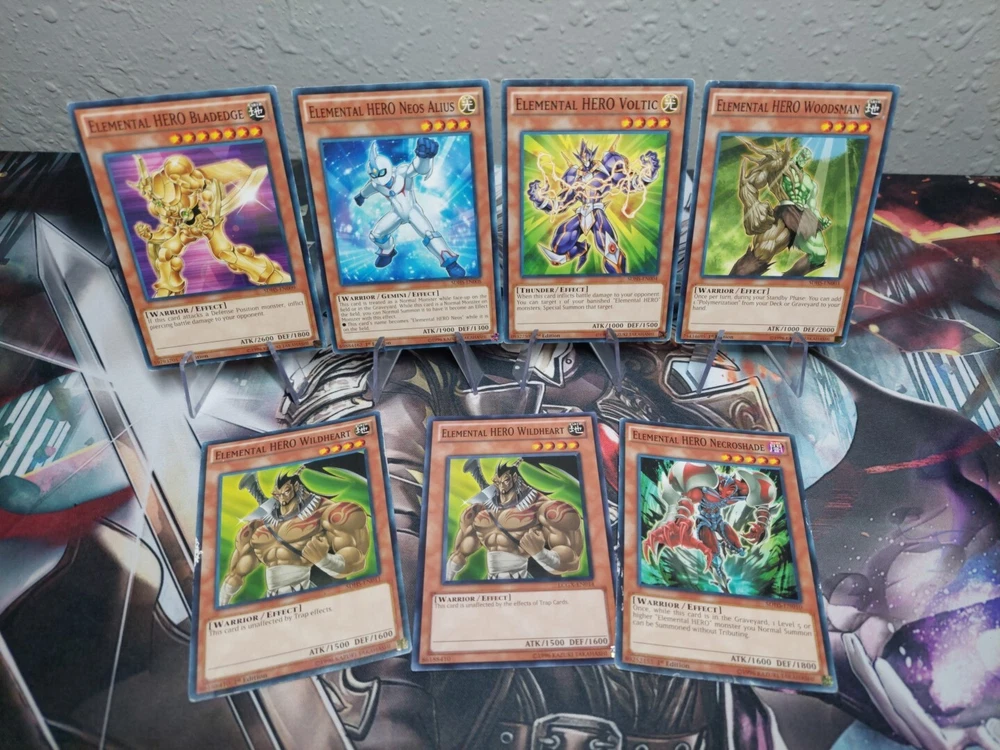 6 cards 1st Ed Elemental Hero cards MP- HP with a few having some damage, see pics. Bonus: Unlimited Wild heart card shown in picks is unlimited and very LP.
