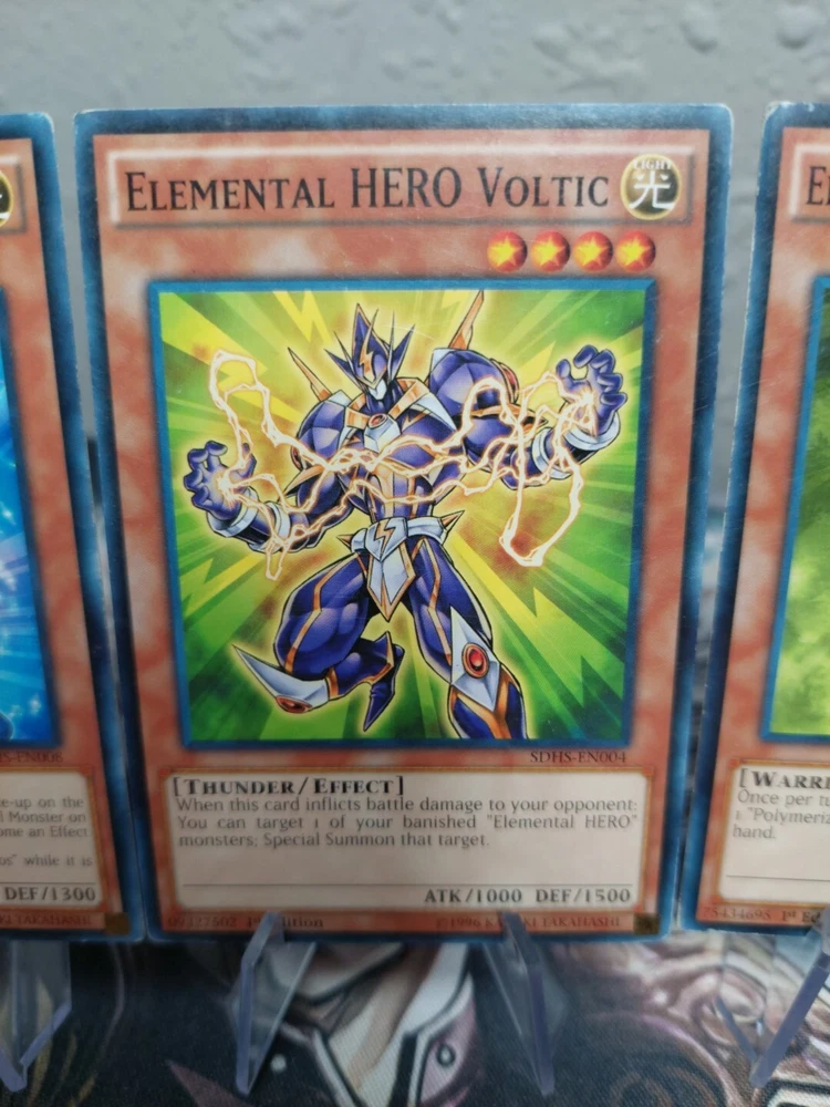 6 cards 1st Ed Elemental Hero cards MP- HP with a few having some damage, see pics. Bonus: Unlimited Wild heart card shown in picks is unlimited and very LP....