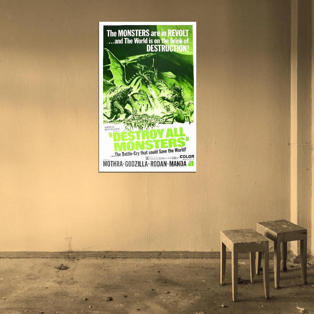 72971 DESTROY ALL MONSTERS Godzilla Mothra King Kong Wall Decor Print Poster Brand new stunning art premium print poster, great as a gift, souvenir, home decor or for collection! Size available: LARGE - 24x36 inches / 60x90 cm REGULAR - 18x24 inches / 45x60 cm SMALL - 12x16 inches / 30x40 cm Poster comes with a SINGLE-SIDE GLOSSY LAMINATION for FREE! Exactly fits standard size poster frames - 36x24, 24x18, 16x12 in.