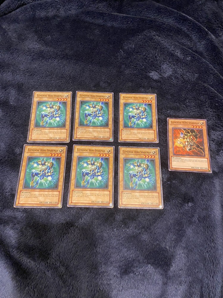 7x elemental hero sparkman lot - YSD, DP1, RYMP Sets Yu Gi Oh Cards....