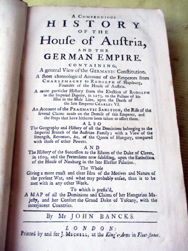 ENLARGED PICTURES!! Please scroll ALL the way down to view LARGER images. E 1462. With color foldng map of Claims of Queen of Hungry, complete with insets of Vienna and Prague. Printed by and for J. Meschell, London. No Date, Circa 1741. Octavo. 8” Tall. 430 pages. With contemporary bookplate of Viscount of Sydney. Map in pristine, bright condition. Full calf, ribbed spine, lacking label. Spine partially scorched from long ago home fire. Otherwise, Tight, exceptionally clean and bright contents. Strong copy. Good condition. Please do not hesitate to e-mail with any questions. As Always, Satisfaction Guaranteed! PAYMENT: PayPal, because eBay requires sellers to list electronic payments exclusively. I expect to receive payment within 10 days, unless we have made other arrangements. MEDIA MAIL: The majority of my books are sent Media Mail to U.S. customers. I add $1.00 for shipping materials, etc. (The shipping price that you see at the top of the page includes the handling fee.) PRIORITY MAIL: I will send both Media cost and Priority cost with invoice, on books which seem to warrant Priority service or when buyer requests it. I'm glad to combine multiple purchases in order to minimize shipping costs. I WILL SHIP INTERNATIONALLY, and I try to be as economical as possible with the shipping costs. Whenever a book will fit comfortably in a Priority Flat Rate Envelope, I'll send it that way. RETURN POLICY: Satisfaction Guaranteed! Payment I accept the following forms of payment: PayPal Shipping & Handling I'm glad to combine multiple purchases for less expensive shipping costs. US Shipping $5.00 USPS Media Mail® International Shipping $32.00 USPS Priority Mail International FREE scheduling, supersized images and templates. Get Vendio Sales Manager. FREE scheduling, supersized images and templates. Get Vendio Sales Manager. Over 100,000,000 served. Get FREE counters from Vendio today!