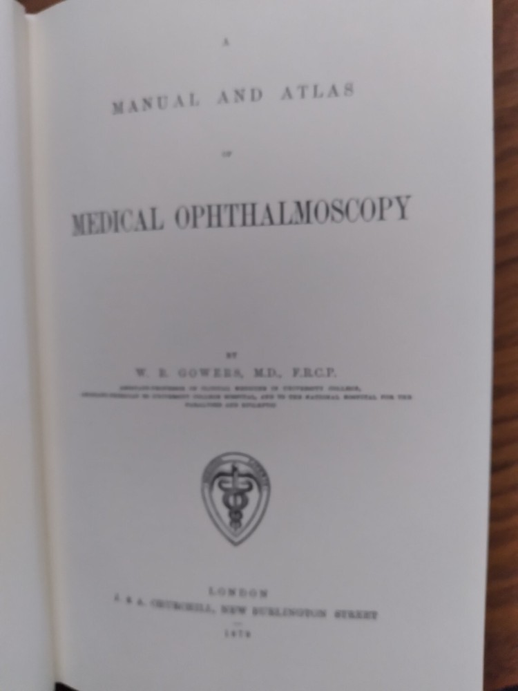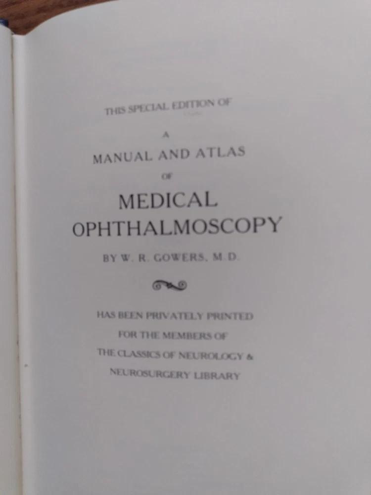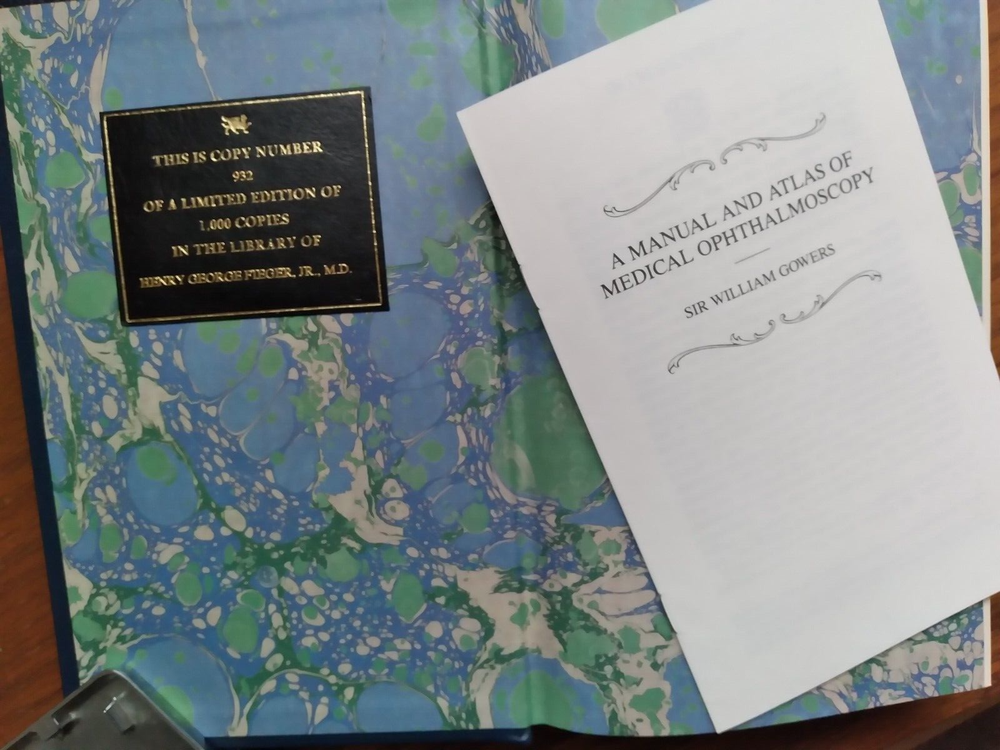 Manual and atlas of medical Ophthalmoscopy By sir William Gowers. LEATHER Gryphon Ed. 1992 Original 1879 issue. 3 sided gilt edge with intro booklet.... LIKE NEW condition limited ed 1000 copies... Illustrated with old graphics... Ships from Denver Colo.