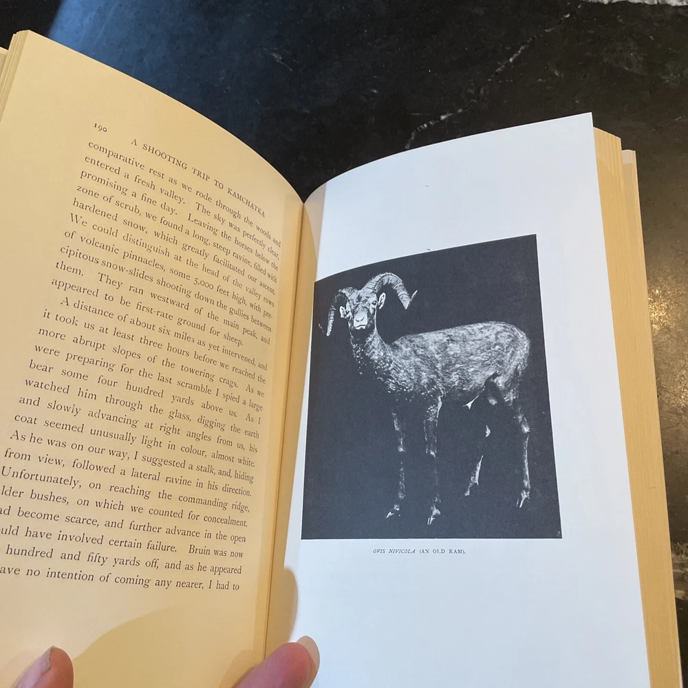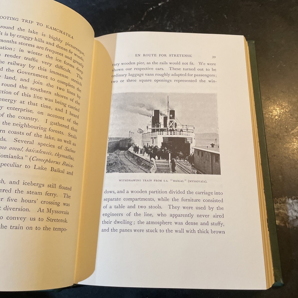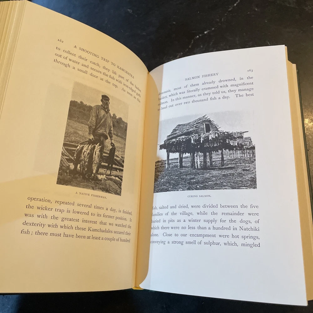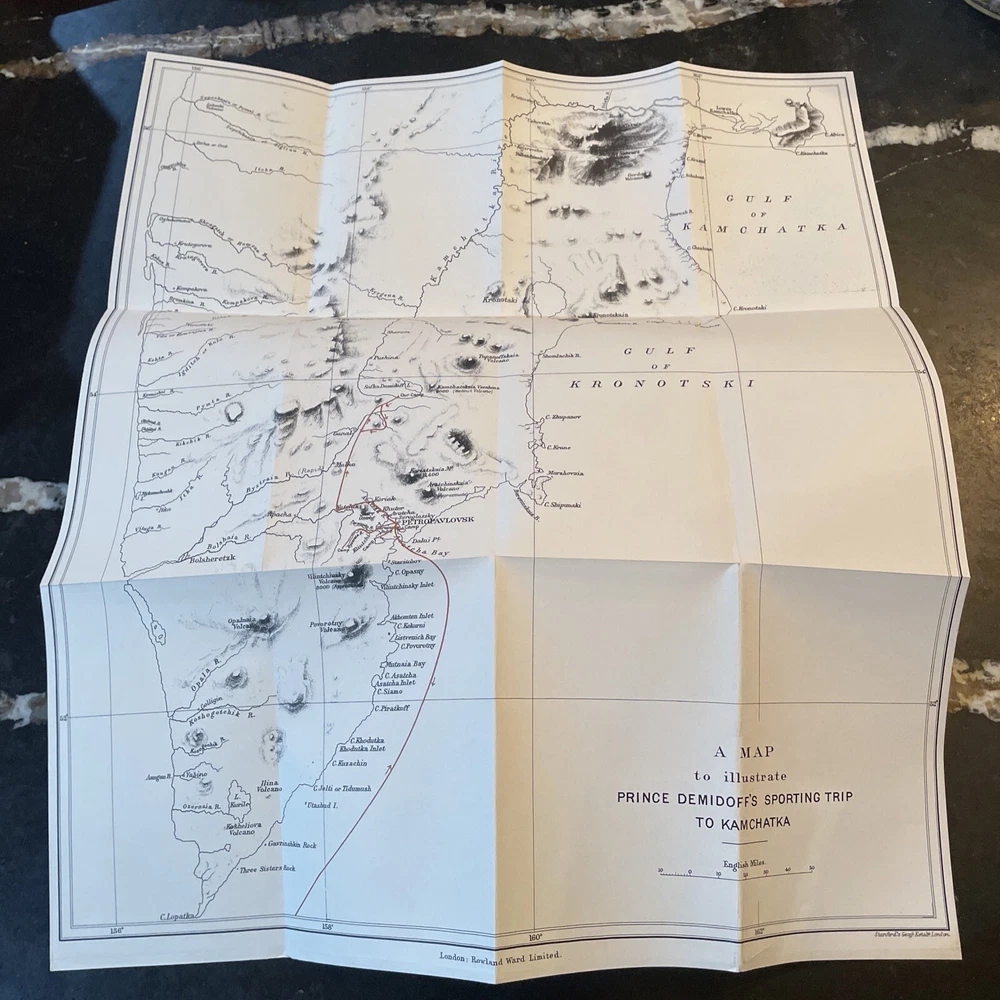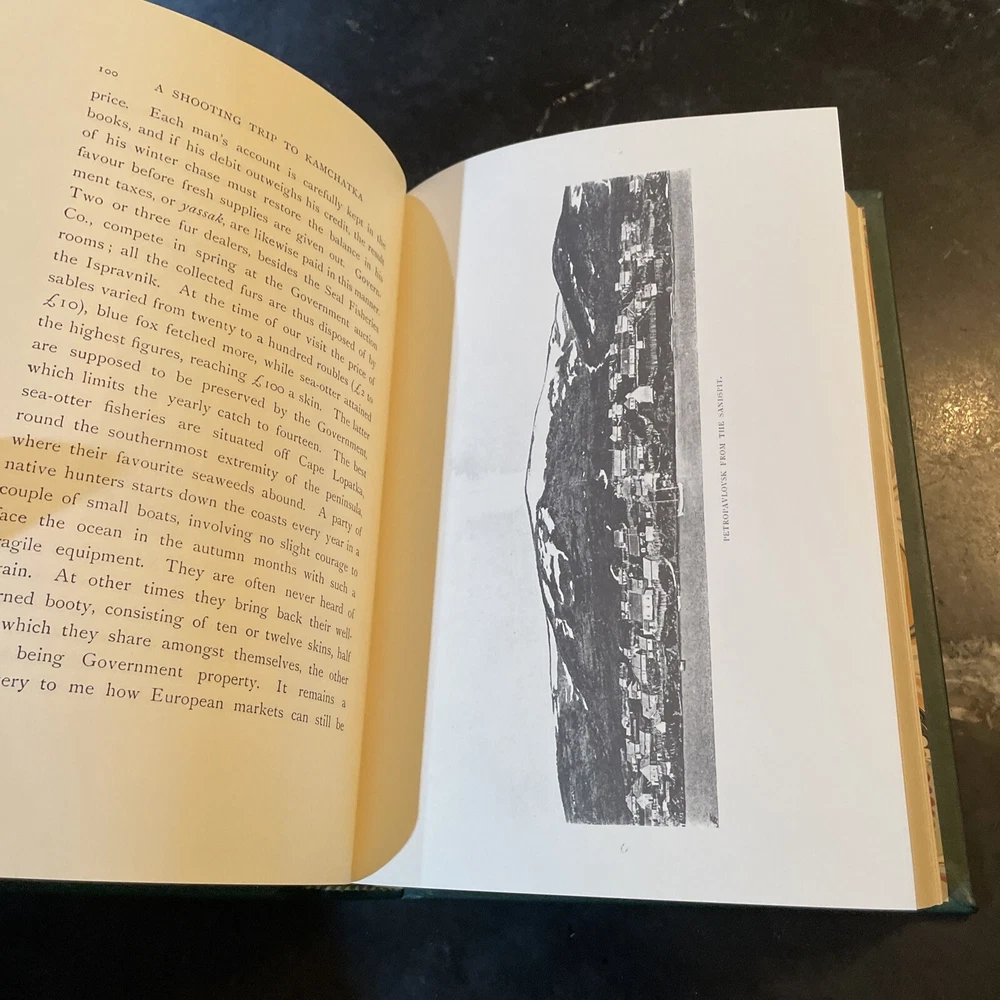 A Shooting Trip to Kamchatka - E. Demidoff - 1994. Published by Culler Press as part of their Asian series in limited run. Green leather with gilt page edges, accents, lettering, and sheep/ram on cover. A beautiful edition of this big game hunting classic. Fold-put maps in pocket at rear, appearing to have never been removed. Cover with a couple very light scuffs. Internally fine. Overall, a quite nice, fine copy. The book is exactly as pictured. Any questions, please ask. Check out our other auctions for related books and ephemera. Thank you, from Haerer Books.