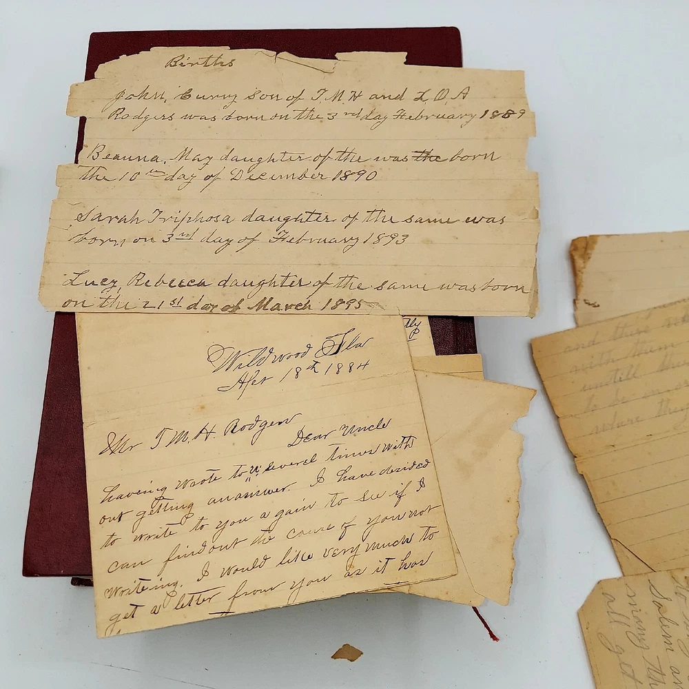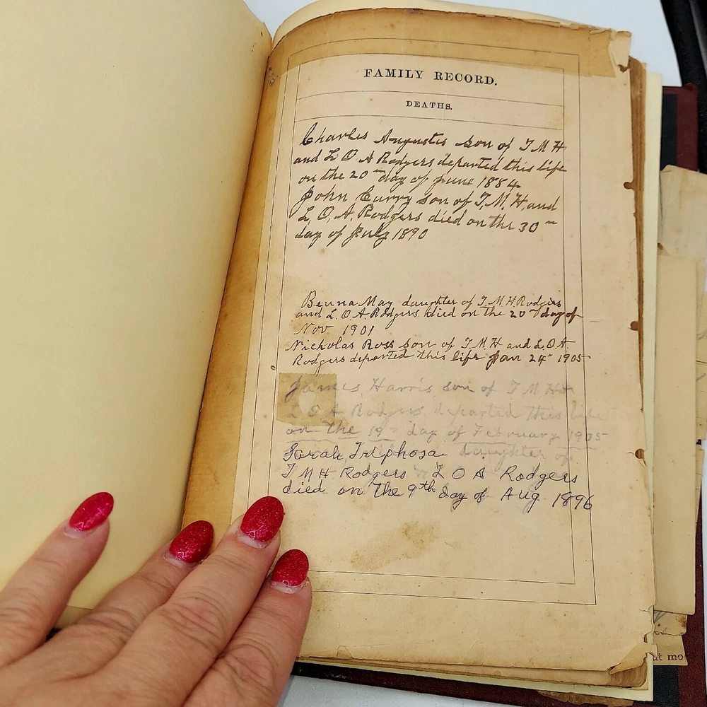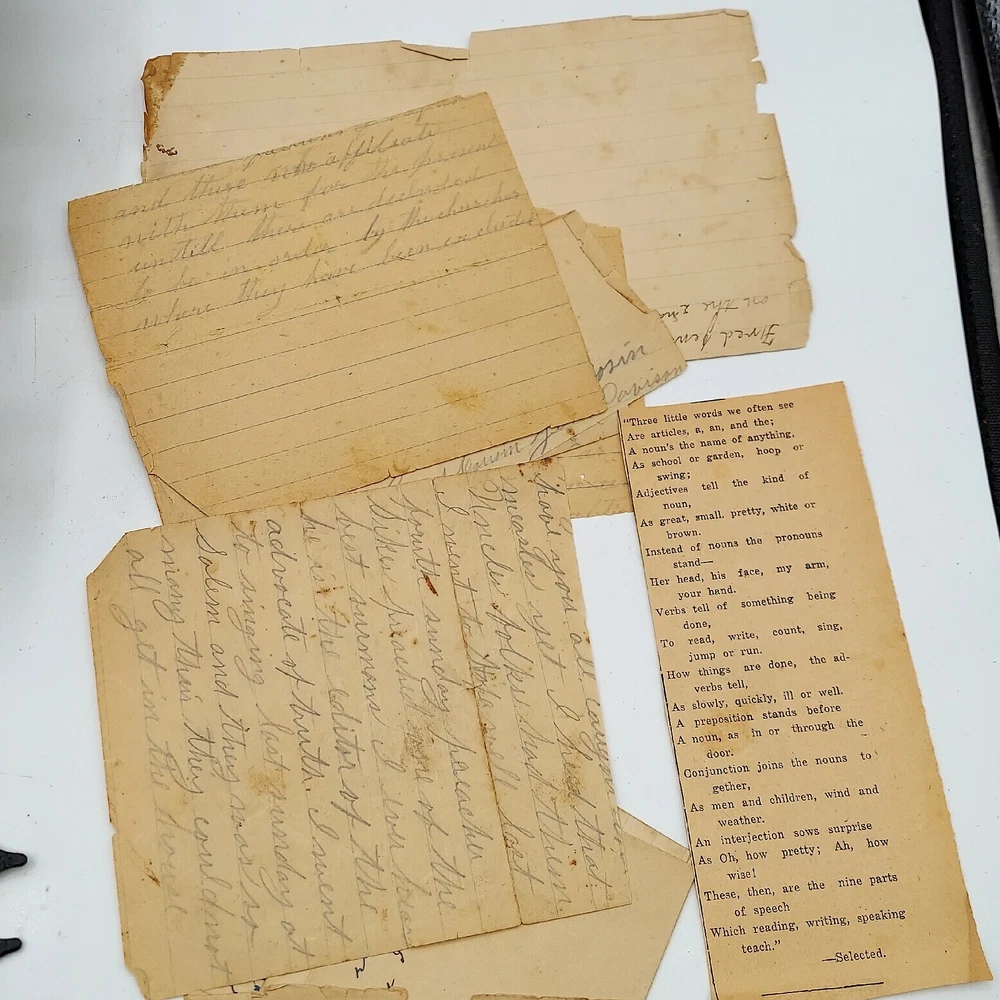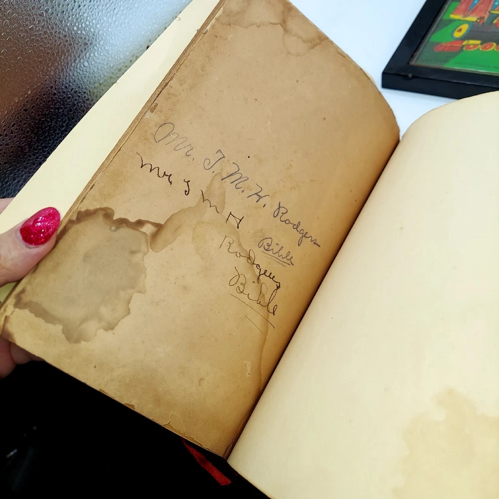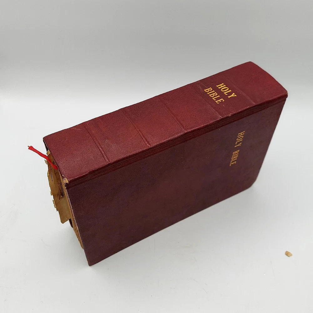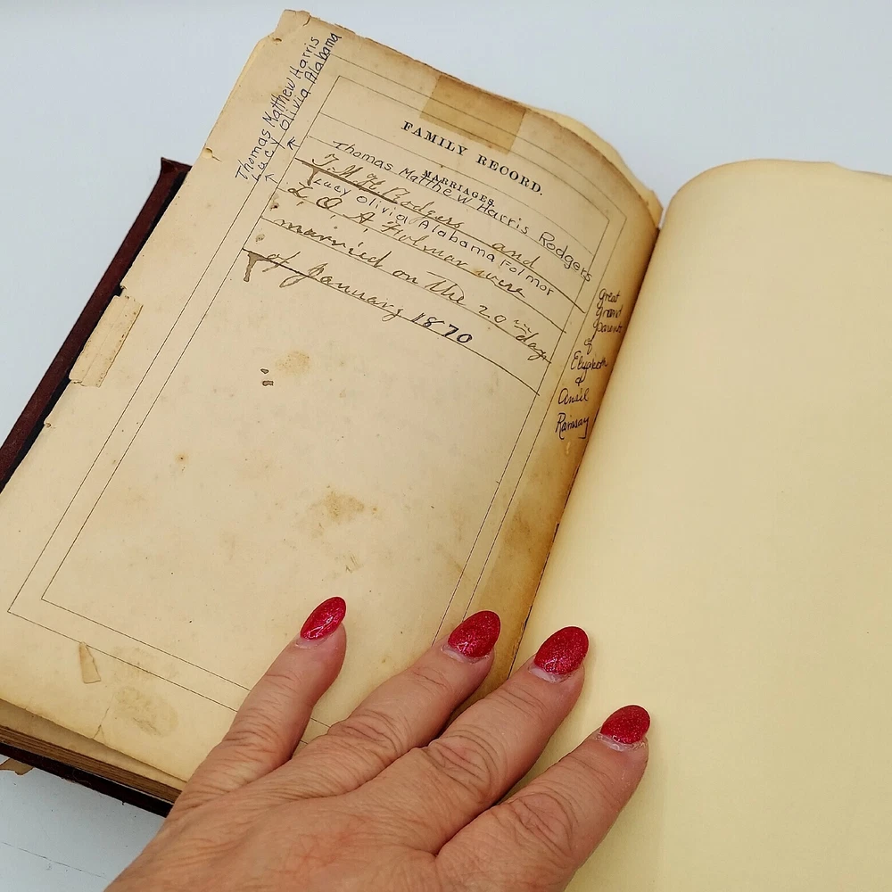 The bible has been rebound front and back covers are not original ( I assume this due to their good condition) one of the front pages has some history of the Bible written in it inner pages - some have light staining, one has a lot of wear and was supported with paper/cardstock ( i have pictured this) some have rips and tears The Bible contains the owners history marriages births ...records dating from 1890 - 1980's, loose letters dating the early 1900s This was an estate sale purchase I asked and there was no family to pass it to which is a shame