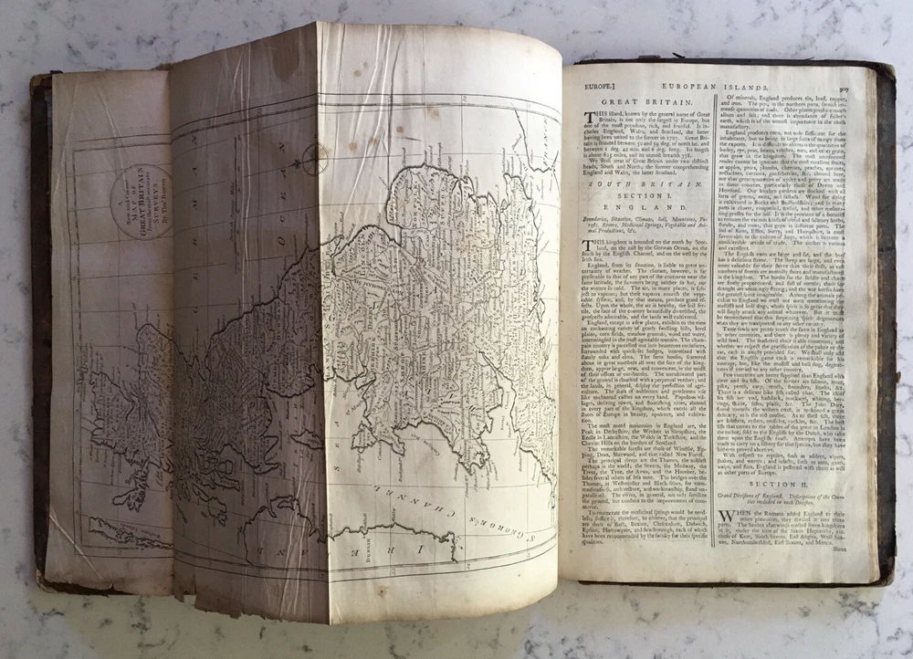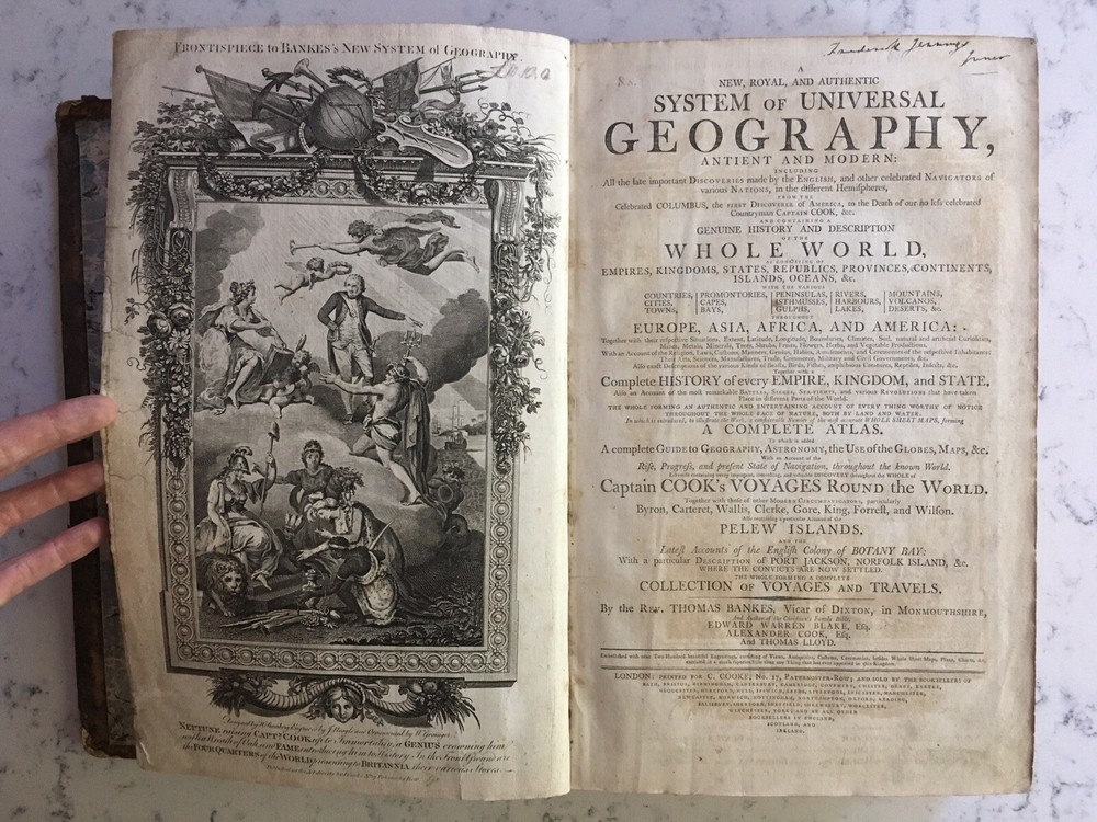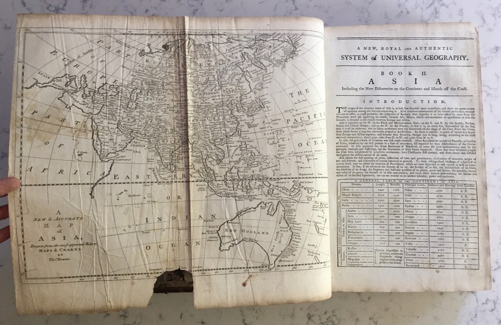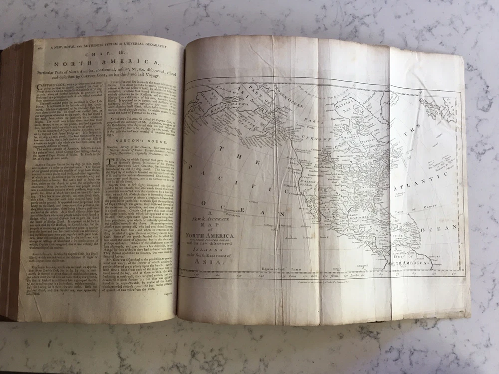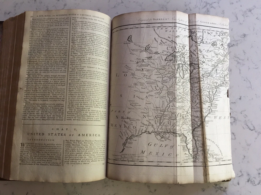 Rev. Thomas Bankes, A New, Royal, and Authentic System of Universal Geography (London: circa 1790) 15.1/4 inches high Missing the following maps and engravings: Pg. 27 - Poulahoo, King of Friendly Islands Pg. 41 Map of Mangea Pg. 93 Terreoboo Bringing Projects to Capt Cook/ Death of Capt Cook Pg. 93 View of Karakooa Bay Pg. 116 Winter Habitations of the Peasants of Kamschatka/ Summer Habitations of Ditto Pg. 116 The Manner in Which the Kamshatka Dry Fish Pg. 257 Various Boats, Barks & Co. used on the Coast of Macabar Pg. 320 Dancing / Hottentot Marriage Pg. 388 Punishingment of a Butcher of Great Cairo Pg. 546 Boats, Barks & Co. used on the Coast of Peru Pg. 584 Habits of the Greenlanders Pg. 685 Russian Dresses- a woman of Livonis Pg. 852 The Port of Marseilles / The Port of Nantes Pg. 892 Map of Italy