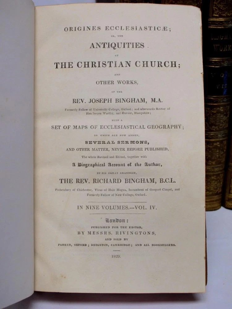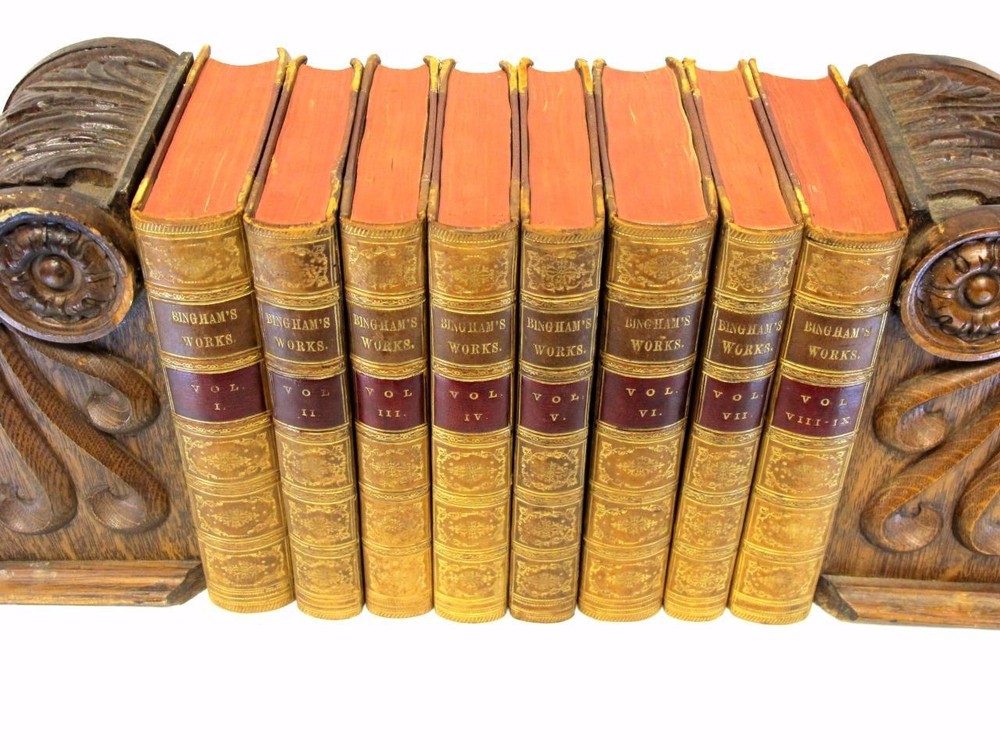 ANTIQUITIES CHRISTIAN CHURCH Joseph Bingham 1829 Complete Set MAPS Sermons Bible Description Origines Ecclesiasticae [or, The Antiquities of The Christian Church; and other works, of the Rev. Joseph Bingham, M.A. with a set of maps of ecclesiastical Geography, and several sermons, never before published. Published in London by Messrs. Rivingtons (for the editor) 1829. (8.5" x 5.75" ea). ] Excellent condition antique book set, complete with all 9 volumes; bound into 8. Bound in three-quarter calf leather with hand tooled gilt spines and blind ruled covers. Page edges dyed red, which has helped protect the interiors very well, as they are still clean and bright white! Illustrated with many folding maps and plates. Near Fine Condition Complete Set! Payment PayPal preferred. We also accept: Propay, all major credit cards, bank transfers, and direct payment for local pickup. Not all transactions are eligible for alternative payment methods, so please email us first to clarify. Shipping We take pride in making sure your items arrive in excellent condition. All items are bubble wrapped and packaged tightly. Most items are shipped in a brand new cardboard box. Single volumes shipped in a "Flat Rate Envelope" will be very well protected, wrapped with extra bubble wrap, and secured with cardboard on both sides. Terms of Sale All Sales are NOT final! Changed your mind? Item just not what you were expecting? Don't worry, all our items are returnable. We all know buying online, before actually holding something with your own hands, can be difficult, that is why we decided to offer our, no questions asked money back guarantee. More details in the returns section. About Us Edition Deluxe Rare Books is owned and operated by Andrew Strom in Portland, Oregon. Full time professional rare book seller since 2007, and member of CBA (Cascades Booksellers Association). Our store is open by appointment only. Contact Us Please feel free to email with any questions and or concerns. Use the "Ask Seller Question" button (bottom left below description). Pictures sell! Auctiva Free Image Hosting. Show off your items with Auctiva's Listing Templates Auctiva, THE simple solution for eBay sellers. Track Page Views With Auctiva's Counter