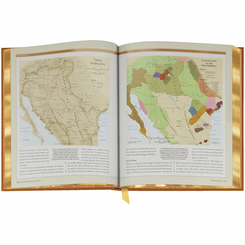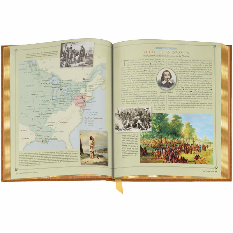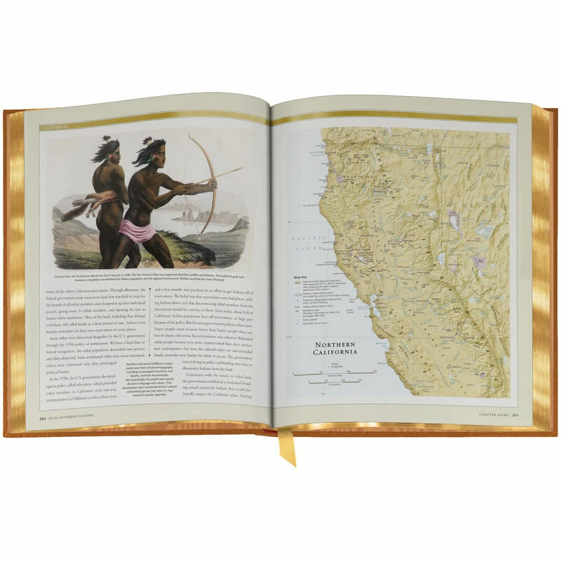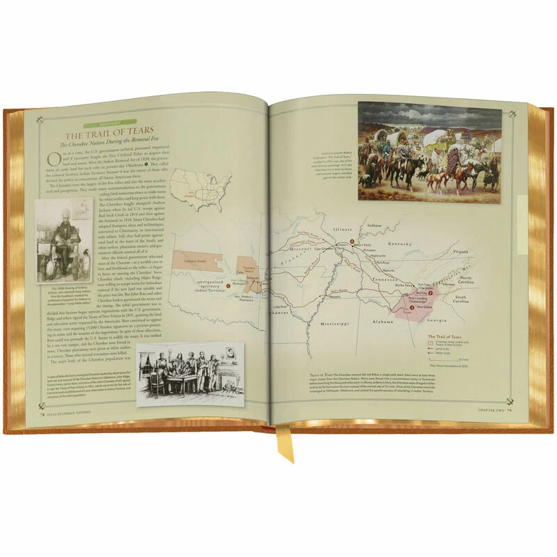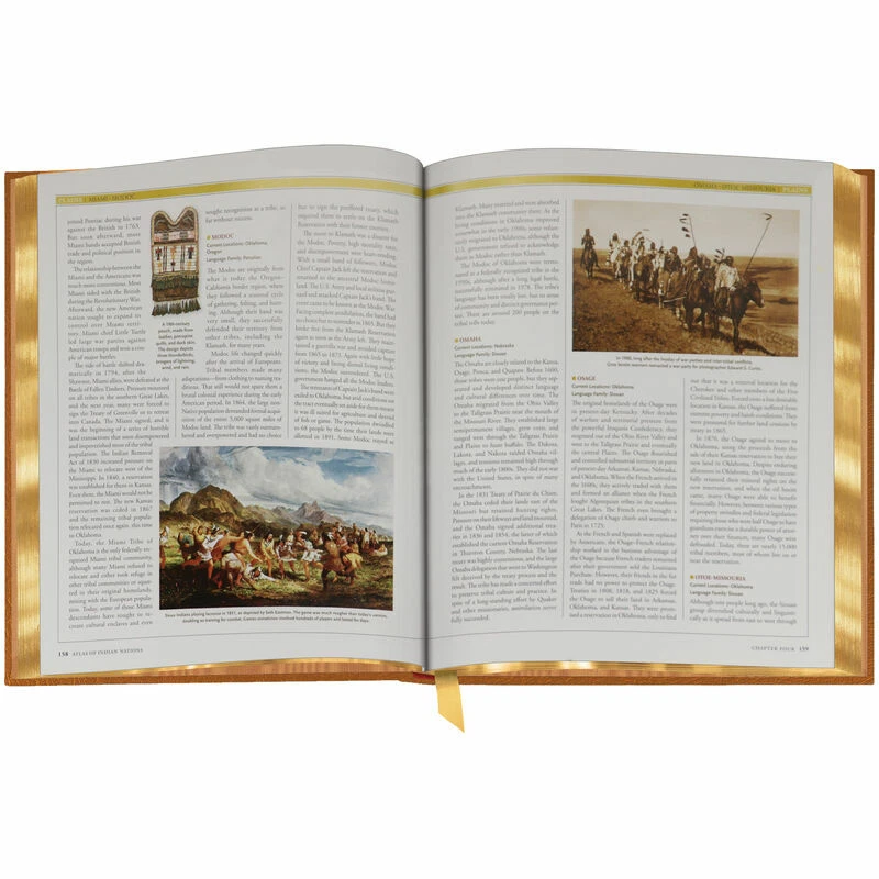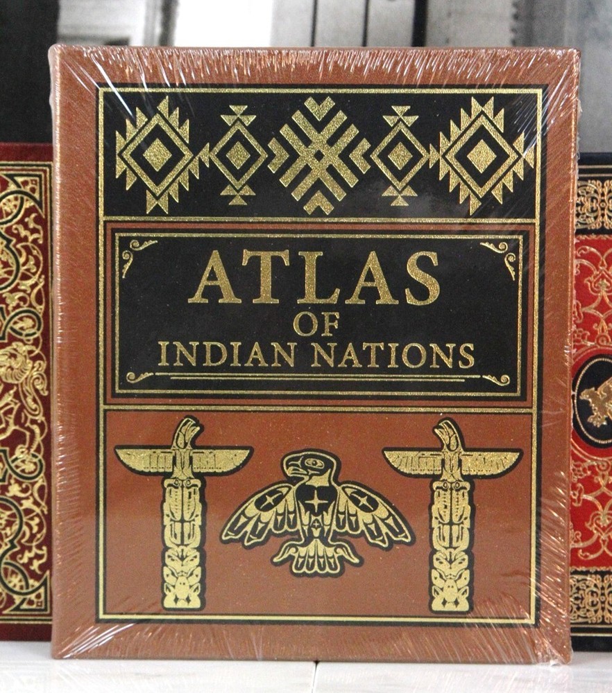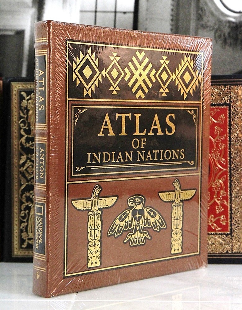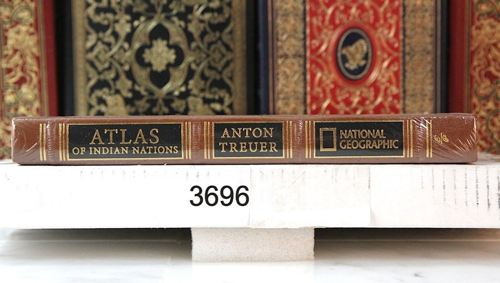 ***Copy of photos, personal formats, graphics, or text is prohibited . Ebay may drop listings with infractions. I review content regularly. Large Coffee Table Art Books Atlas of Indian Nations National Geographic Author: Anton Treuer Illustrations by Description : A brief but comprehensive reference to Native American history and culture, illustrated throughout with maps, photos, art and archival cartography. This encyclopedic resource details Indian tribes across the American continent - their beliefs, sustenance, shelter, key historical events and more. Condition : Sealed in original plastic, with original shipping box. Factory fresh. This Fine Leather Book Features: Top grade, gold embossed/ornamented leather Gilded page ends to protect against dust and moisture Decorative end papers Acid neutral archival paper to last generations