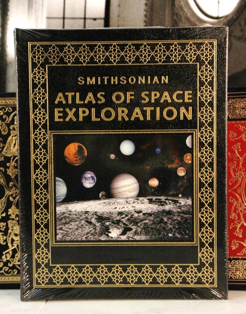 ***Copy of photos, personal formats, graphics, or text is prohibited . Ebay may drop listings with infractions. I review content regularly. Large Coffee Table Art Books Smithsonian Atlas of Space Exploration Author: Illustrations by Description : Out of print from Easton Press but offered here near or below its original price. Condition : Sealed in original plastic This Fine Leather Book Features: Top grade, gold embossed/ornamented leather Gilded page ends to protect against dust and moisture Decorative end papers Acid neutral archival paper to last generations