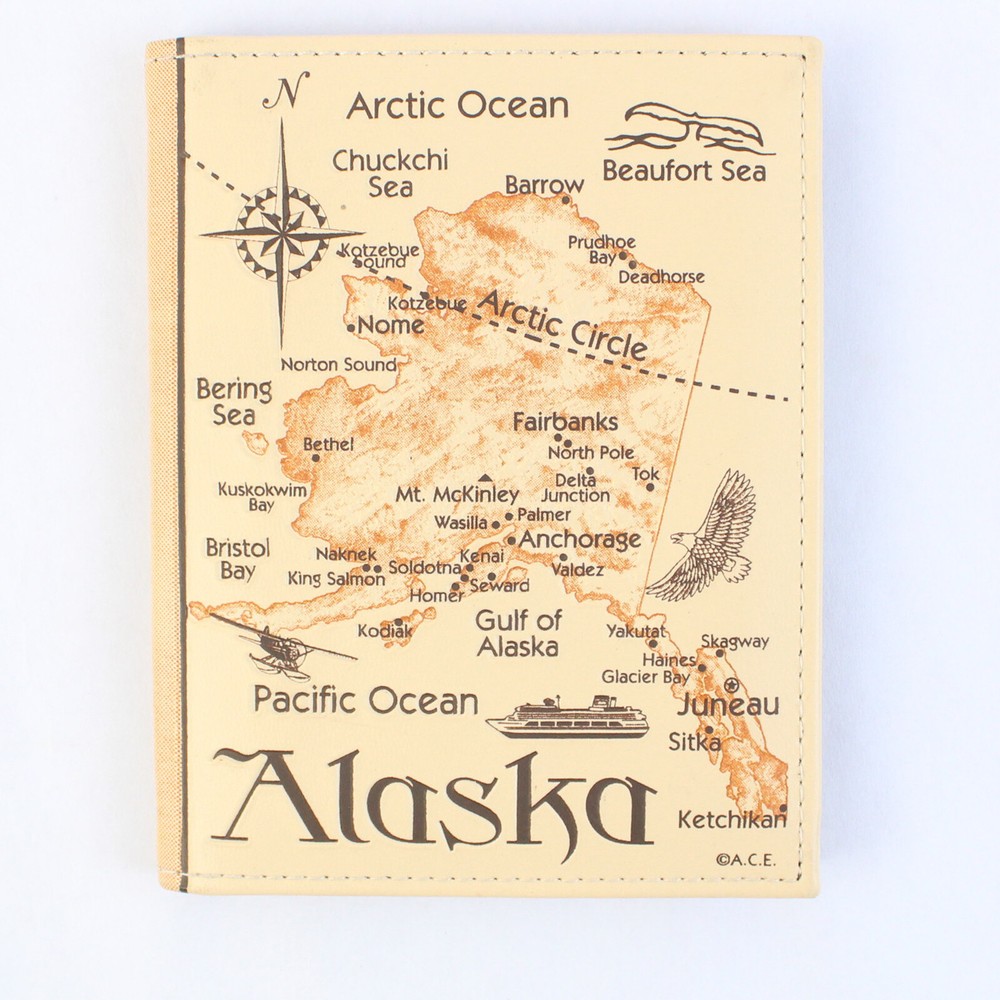 This beautiful faux embossed leather photo album showcases an Alaska map, perfect for preserving memories from your Alaskan cruise trip. It holds 24 photos sized 4x6 inches, making it an ideal keepsake for your travel adventures. This album is in good pre-owned condition, ready to store your cherished photographs. Dimensions: 6.25" L x 5" W x 1" H.