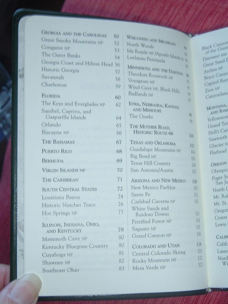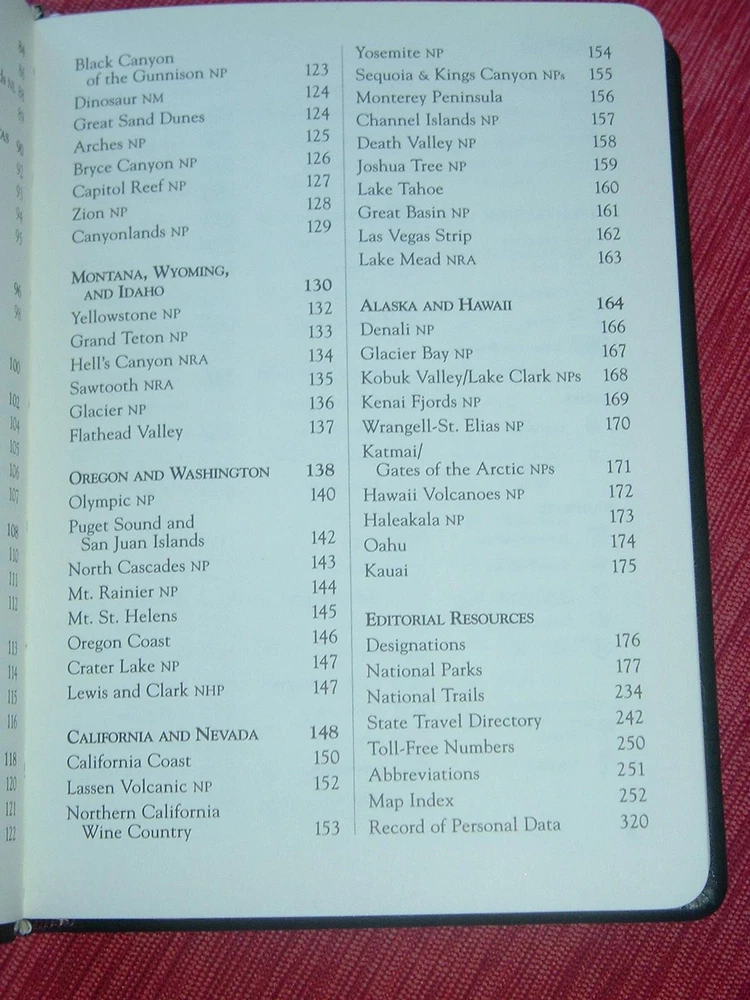America National Parks and Destinations Guide w/MAPS 6" Real Leather /gold gilt America National Parks and Destinations Guide w/MAPS 6" Real Leather /gold gilt A little larger than pocket-size, it's 6" by 4 1/2" bound in fine forest green leather, with attached ribbon bookmark and gold gilt page edges. Appears UNUSED. Published 2010, and page in back of book states it's printed on permanence paper that meets criteria for preservation for hundreds of years with proper storage. 320 pages. I have photographed the 3 CONTENTS pages for your perusal. My photographs don't do it justice. Ships well protected. Please see photos above which can be enlarged by clicking on the image for a close-up view. ALSO, see my other listings for more rare and collectible books. Shipping by media mail and will include emailed tracking information. I ship within 24 hours of receiving payment. Please see my feedback if you have a moment - Thanks! Listing and template services provided by inkFrog