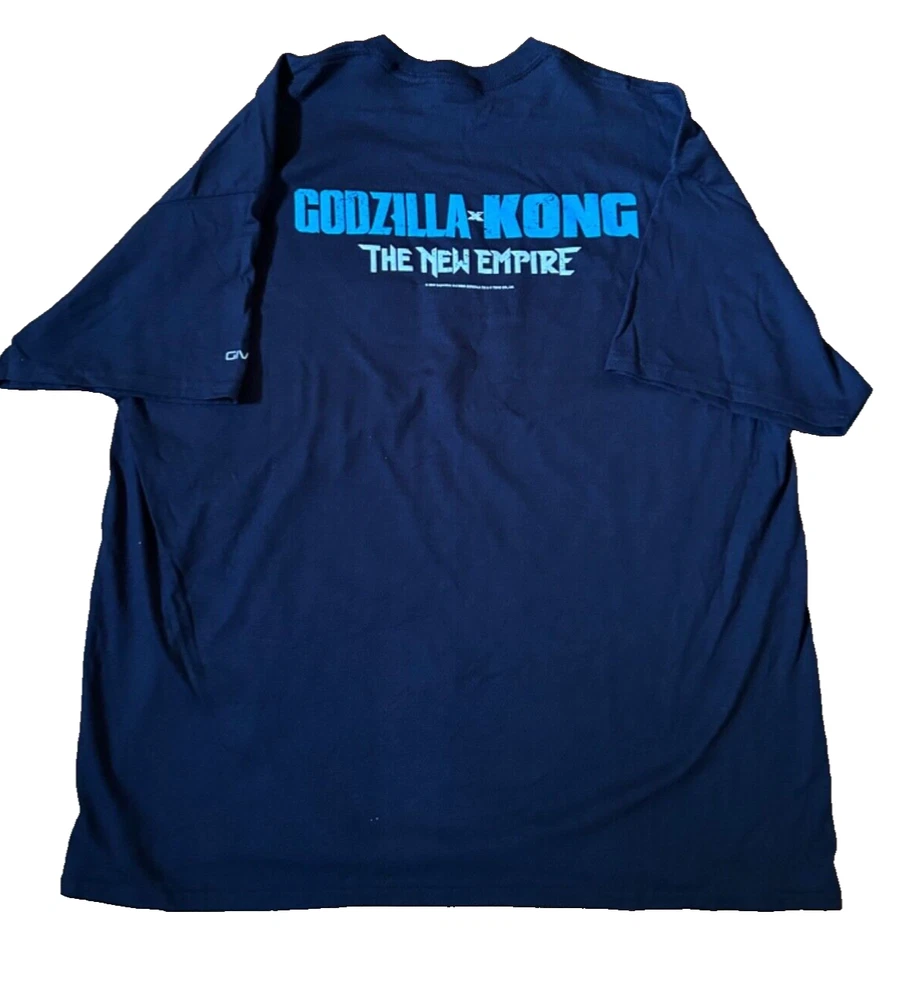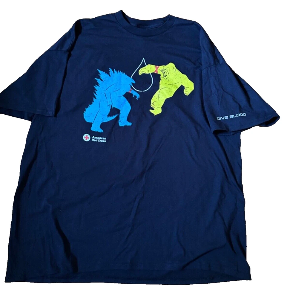 Show off your love for the iconic movie characters Godzilla and King Kong with this American Red Cross Empire Movie T-Shirt. The shirt features a graphic print of the two legends in an action-packed pose. The short sleeve shirt is made of 100% cotton and has a crew neck. It comes in size M and is perfect for unisex adults. The shirt is machine washable on cold with a tumble dry on low. The black shirt has accents of graphics that add a touch of style to the shirt. This T-shirt is a must-have for any fan of the Godzilla and King Kong franchise.