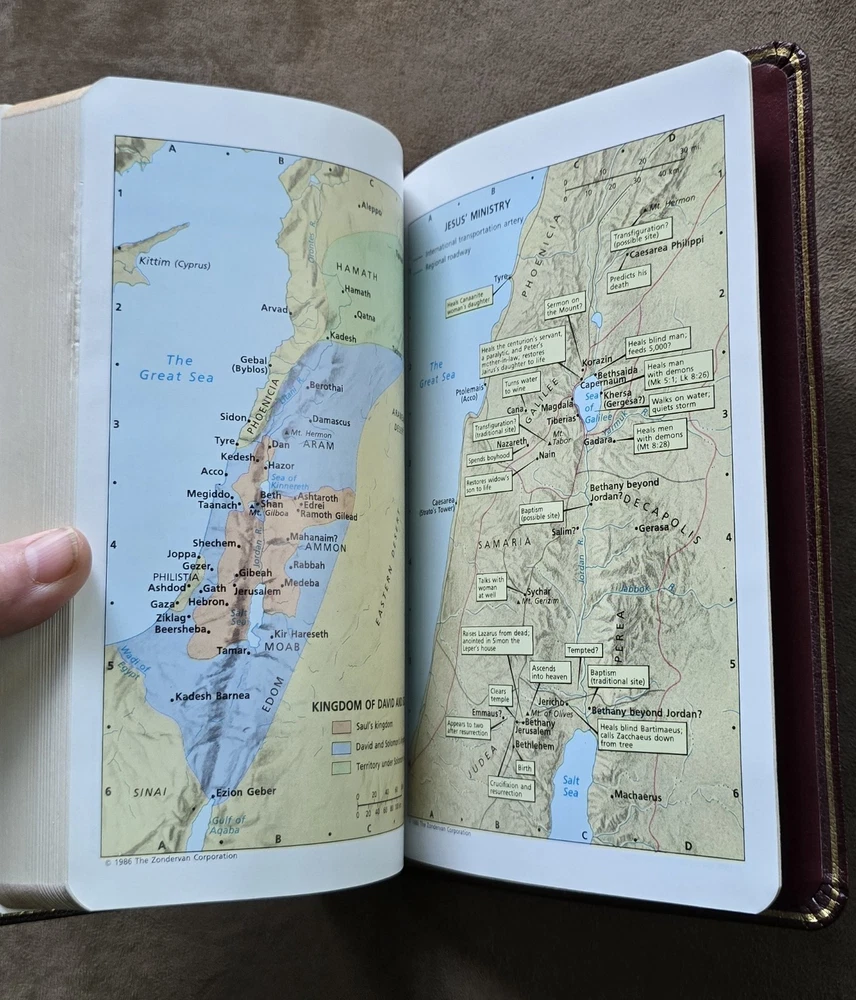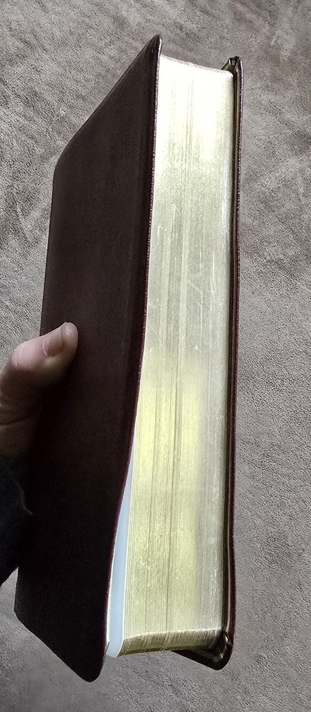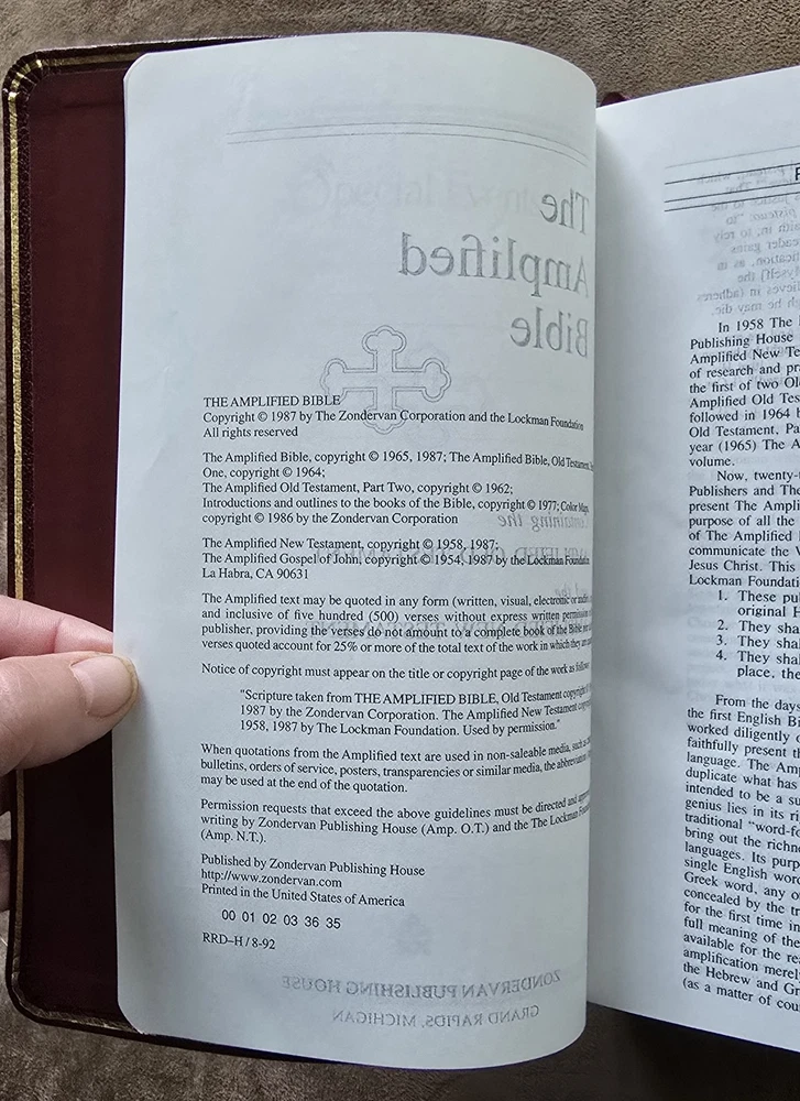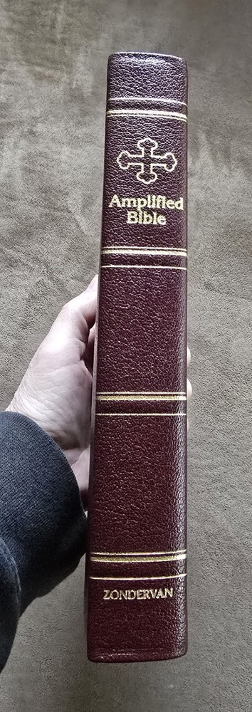 Amplified Bible, Classic AMPC, 1987 ~ Burgundy Genuine Leather For your consideration is an Amplified Classic Bible with a burgundy genuine leather cover that has a very supple feel. There is zero writing, underlining, or highlighting. There is a very tiny tear on the front cover page, which has been taped . Also, a few of the pages in the back of the Bible are a little crinkled. These minor defects keep this gorgeous looking Bible from being brand new. Please check out all of the pictures. This Bible is from a smoke-free home. I ship on Tuesdays and Fridays & I will ship your Bible in a sturdy box, not a flimsy plastic bag!! Thanks for looking 😊.