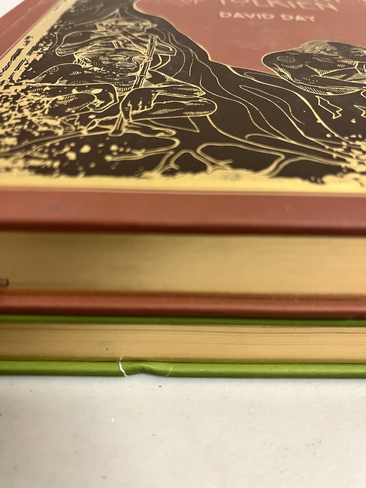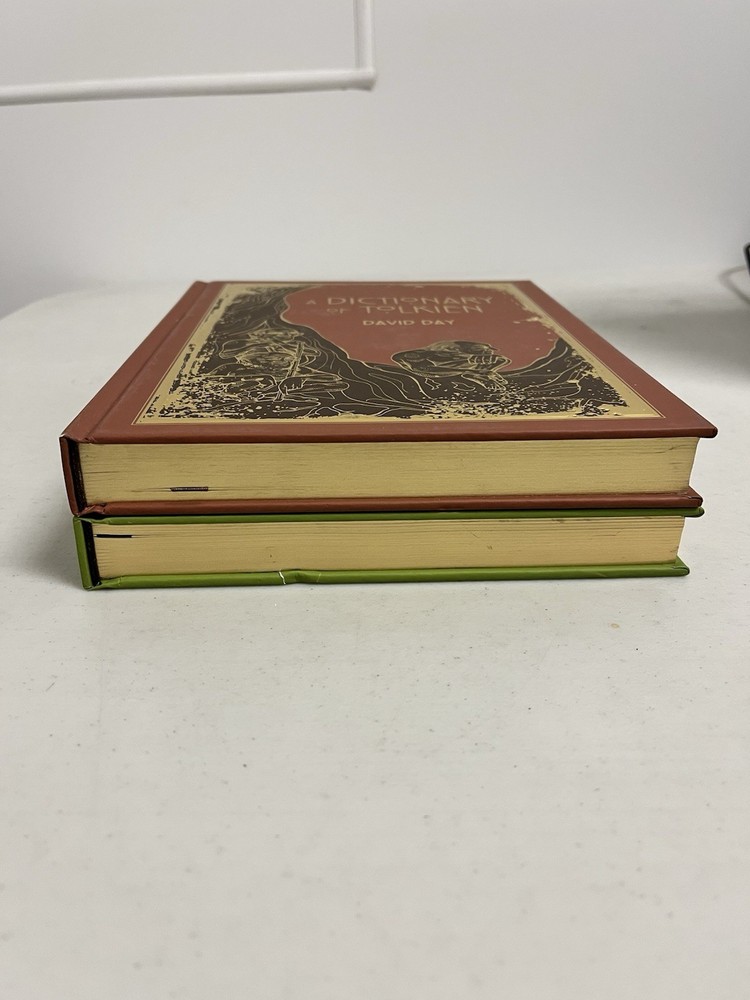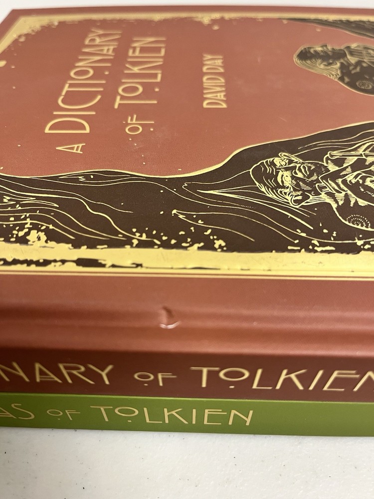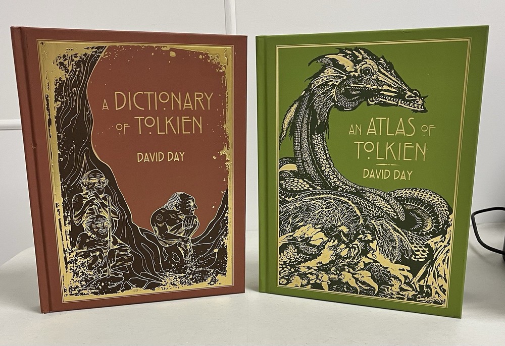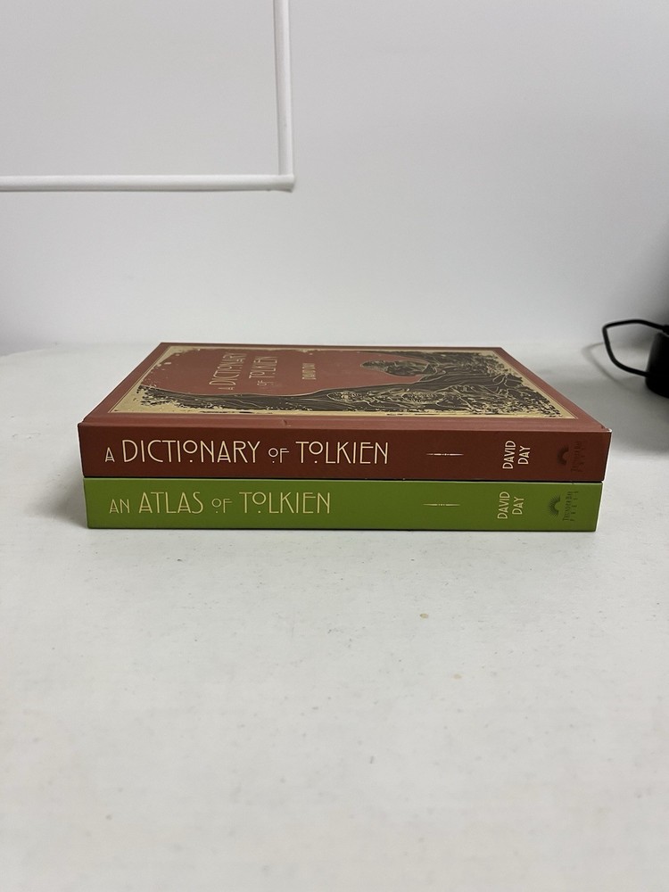 LIKE NEW! An Atlas of Tolkien and A Dicitonary of Tolkien By David Day Imitation Leather Hardcover 9x7.5 inch version Books are new and unused. May have a minor imperfection on the cover