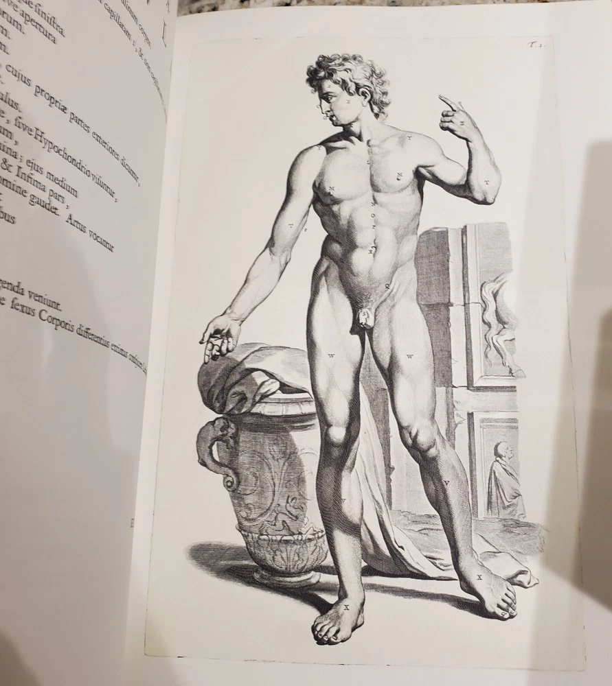 The book is covered in plastic to protect it. The book is in good shape overall but does show wear around the edges and corners. The pages are in good shape but also show basic wear. The pages are thick and made of good quality. The gold around the edges is sharp and in good shape. This is a limited edition only 2000 copies where made. This copy is number 5. Facsimile edition of Bidloo's noted atlas of human anatomy first published in Amsterdam in 1685. Large 4to (11"x16"), bound in burgundy leatherette, marbled end-papers, all edges gilt. No. 5 of 2000 copies printed. A bit of rubbing at top and bottom of spine, otherwise good.. The atlas is illustrated with 105 plates by Gerard de Lairesse, showing the human figure both in living attitudes and as dissected cadavers.