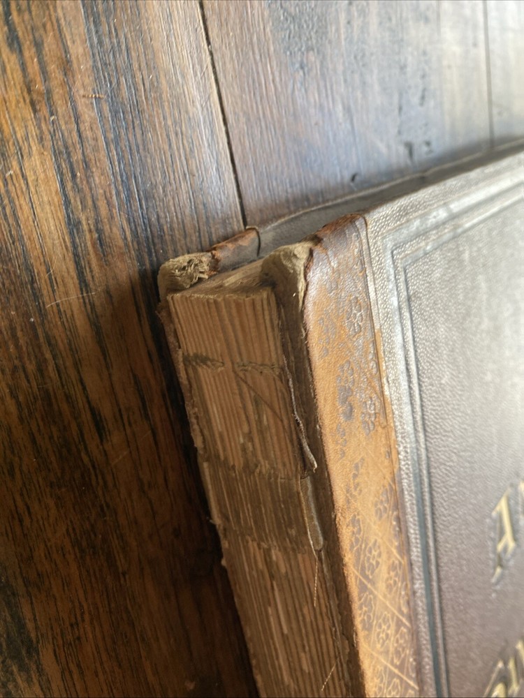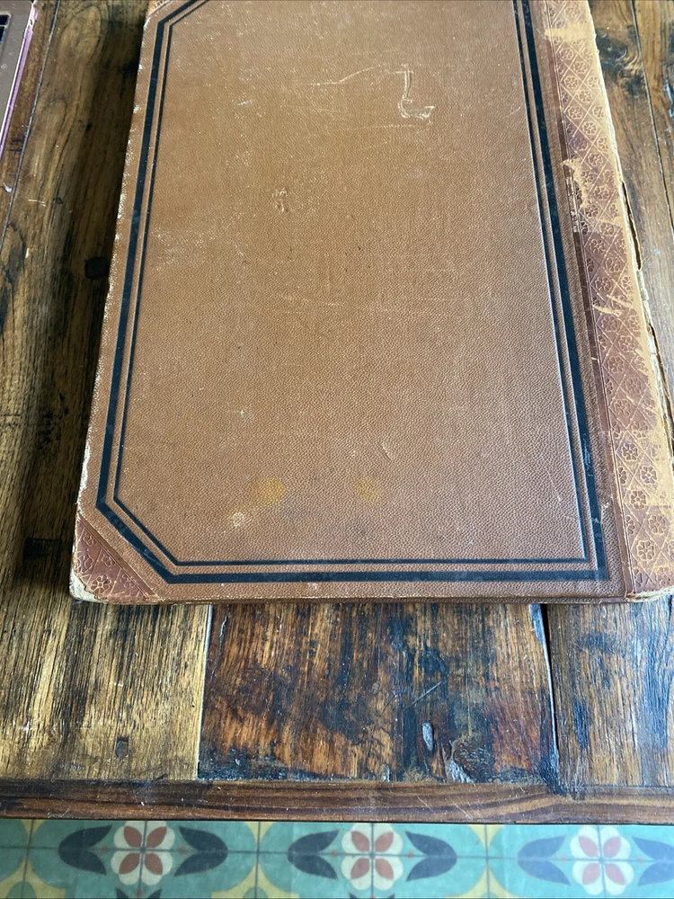 Antique - leather spine heavy wear corners - spine cover missing - covers loose bit not terrible - inside binding ok !there looks to have been some repair work to me! - please see pics!