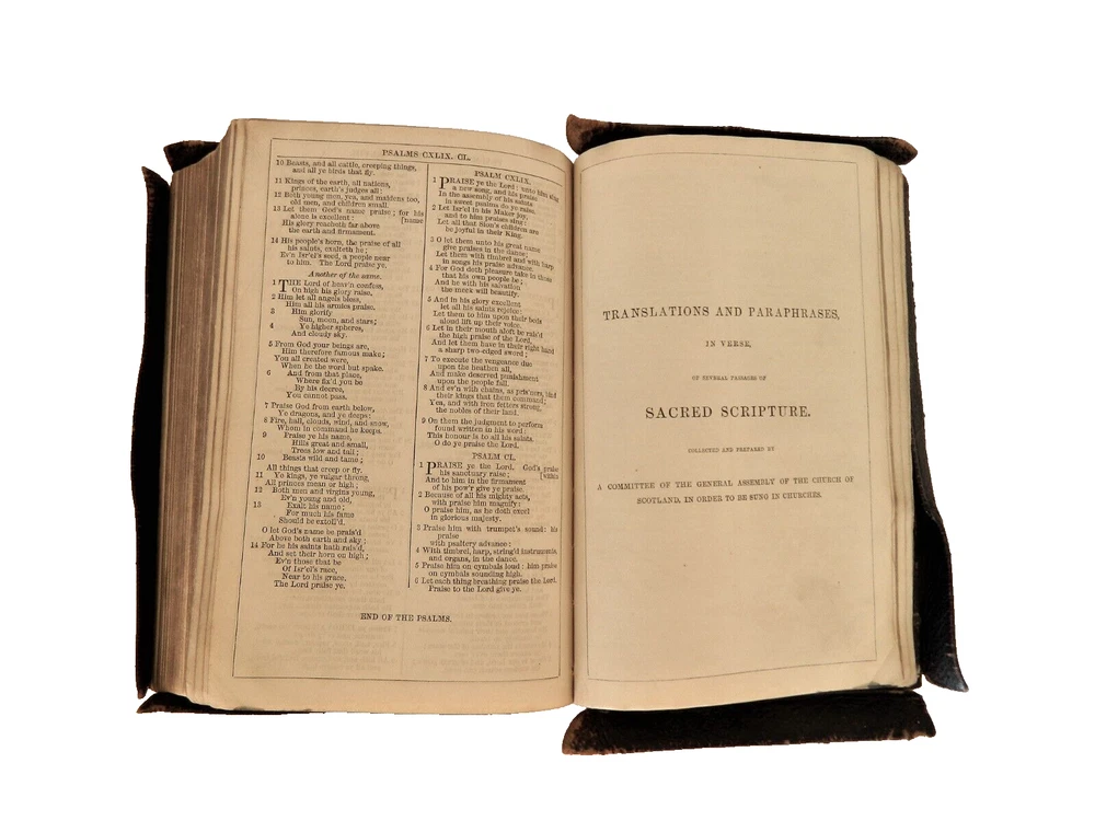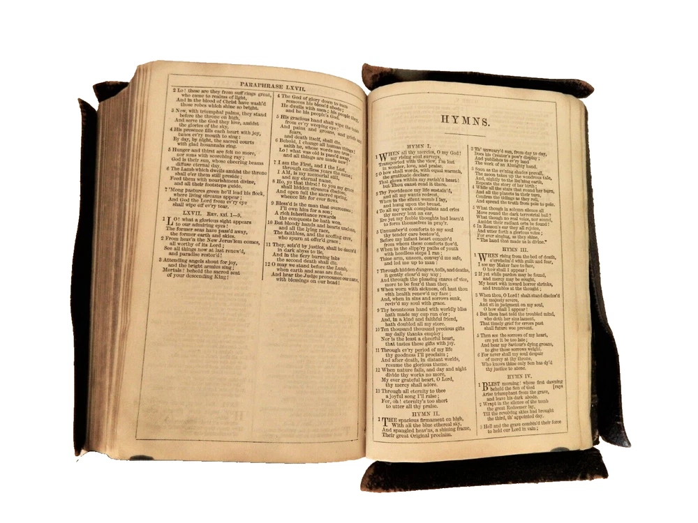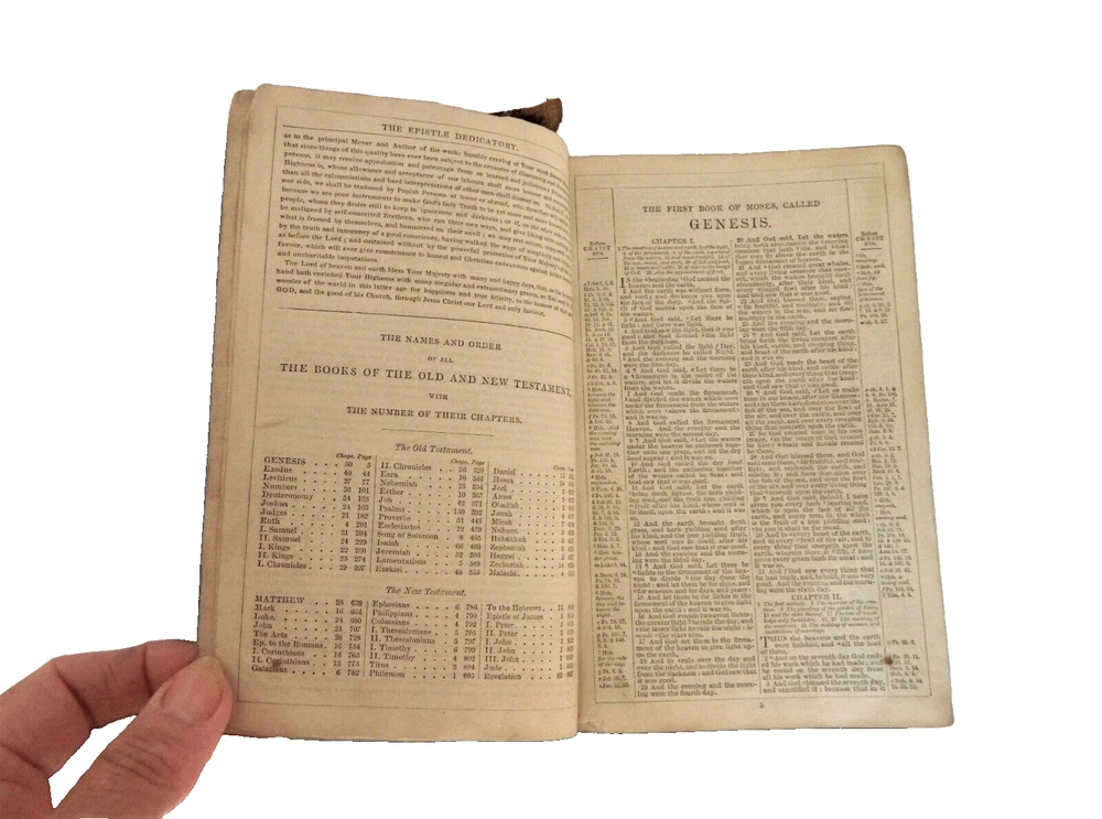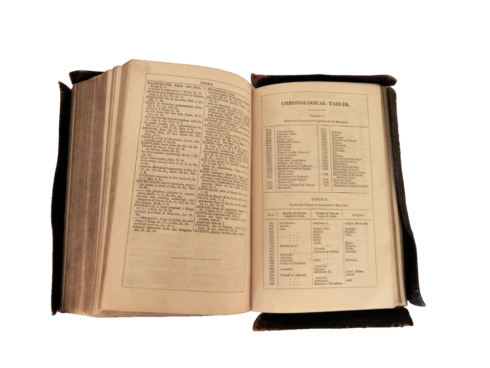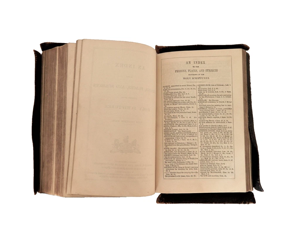 Very interesting collectible antique bible. Presented to my great grandmother in 1894 on her marriage. Gilt edged. Pages intact. Colour map illustrations. Leather jacket worn with age. 4.5 in x 6.5