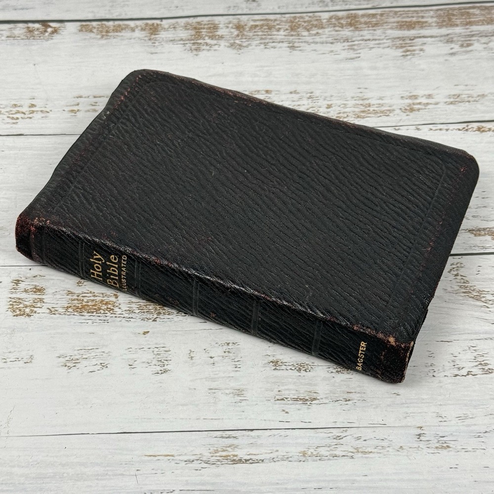 Size: 5.25” x 8.25” x1.25” Good condition for age of Bible. Some foxing on pages. Binding is VG. Some personal writing on inside pages. This Antique 1901 Leather Holy Bible Illustrated Old & New Testaments published by Bagster in London features intricate illustrations and maps, making it a valuable collectible for those interested in religion and spirituality. Translated by His Majesty by special command, this Bible contains the Old and New Testaments in English, with various illustrations by different artists. The exquisite leather binding adds to its charm, and its personalized aspect adds a unique touch to this piece of Christian literature from Europe.