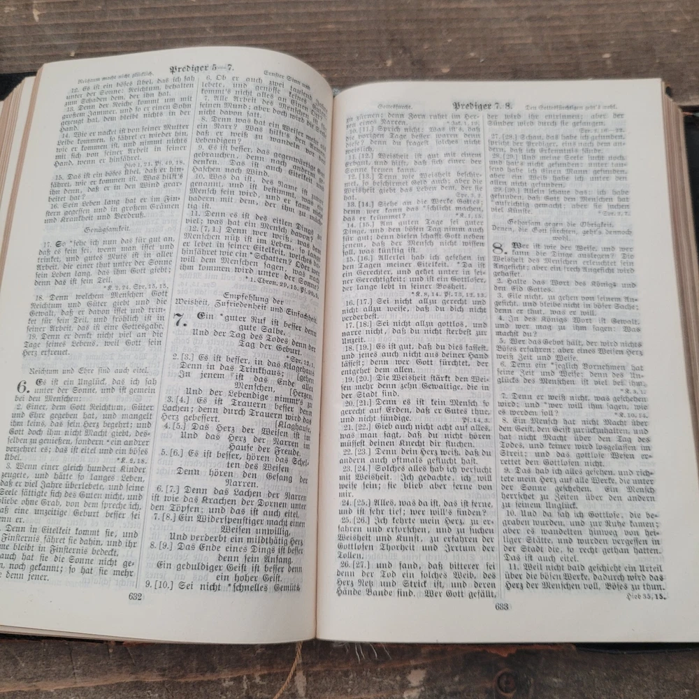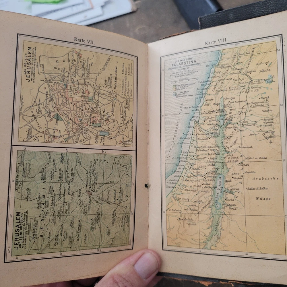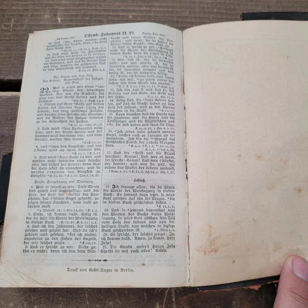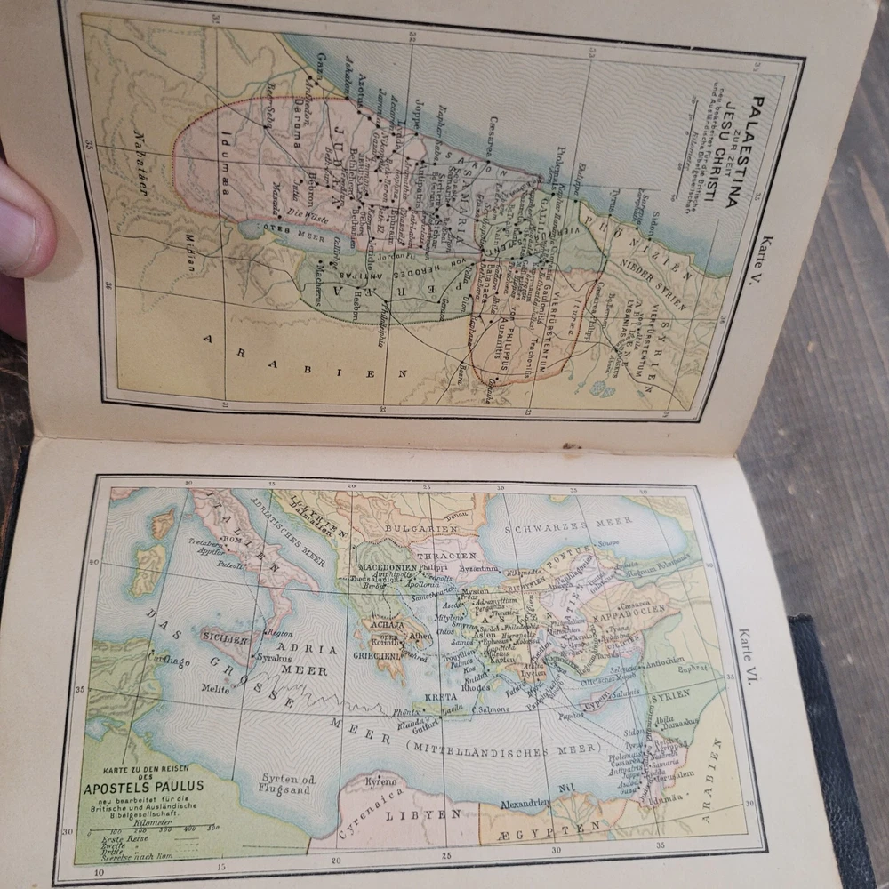 This antique German Bible is a true gem for collectors and enthusiasts of religious history. The book is bound in a soft leather cover and features old color maps that bring the stories of the Bible to life. The language of the book is German, and it was printed in Berlin, Germany. The topic and subject of the book are religion and spirituality, making it a valuable addition to any collection of antique books. This original copy of the Bible is a rare find, and it is sure to be a conversation starter among anyone who sees it. ***Good used condition. Cover shows signs of wear due to age and normal usage. Please see photos.