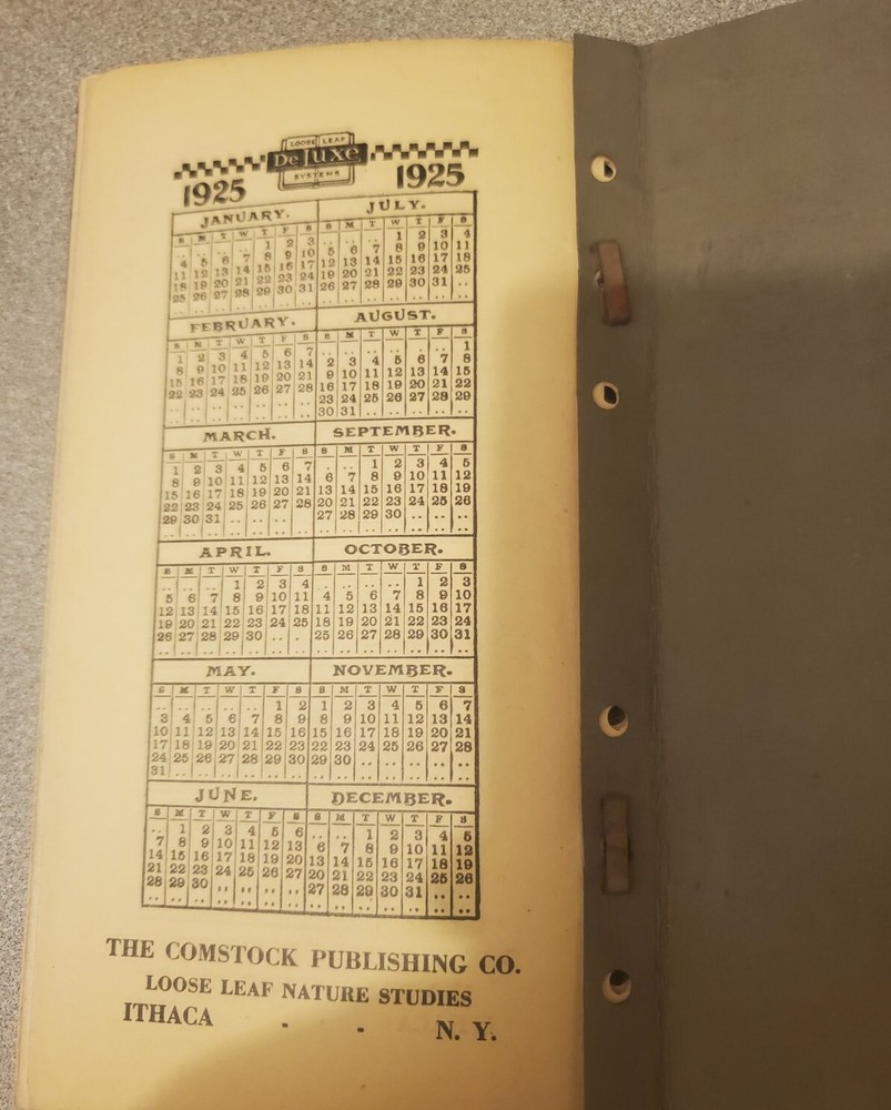 1925 Field and Camp Notebook, Comtock and Vinal. Ithaca, New York. Star Map, pages fold out. Great Condition. Loose Leaf Nature Studies Comstock Publishing. Calendar...
