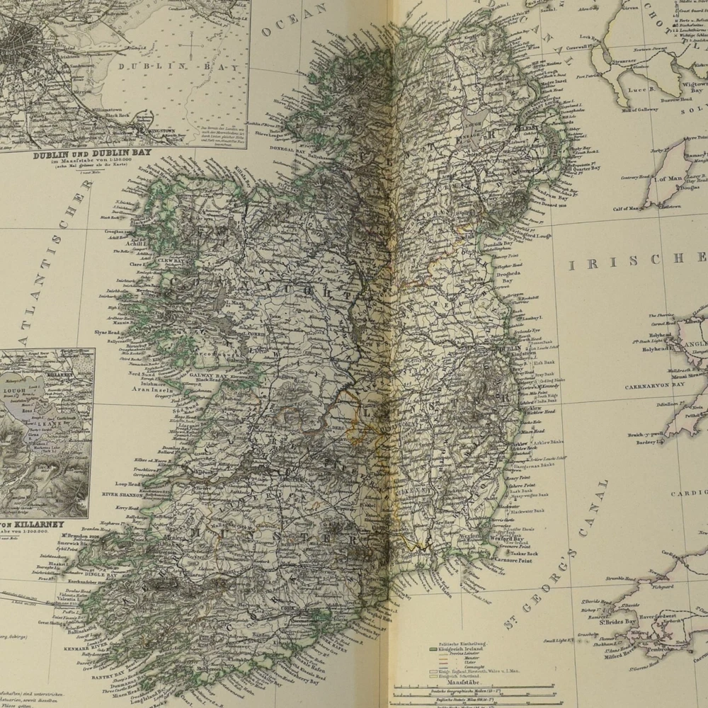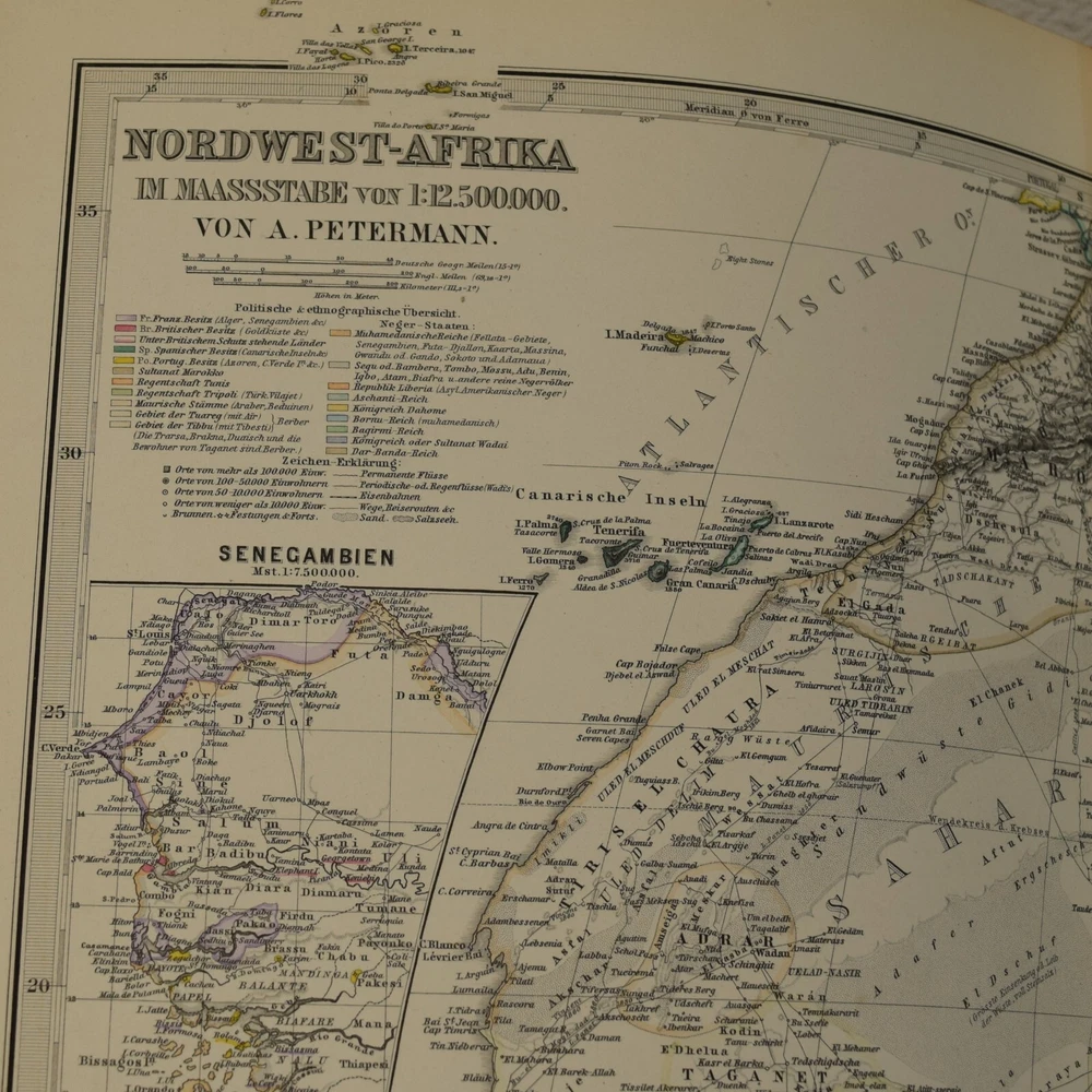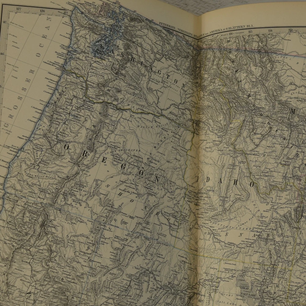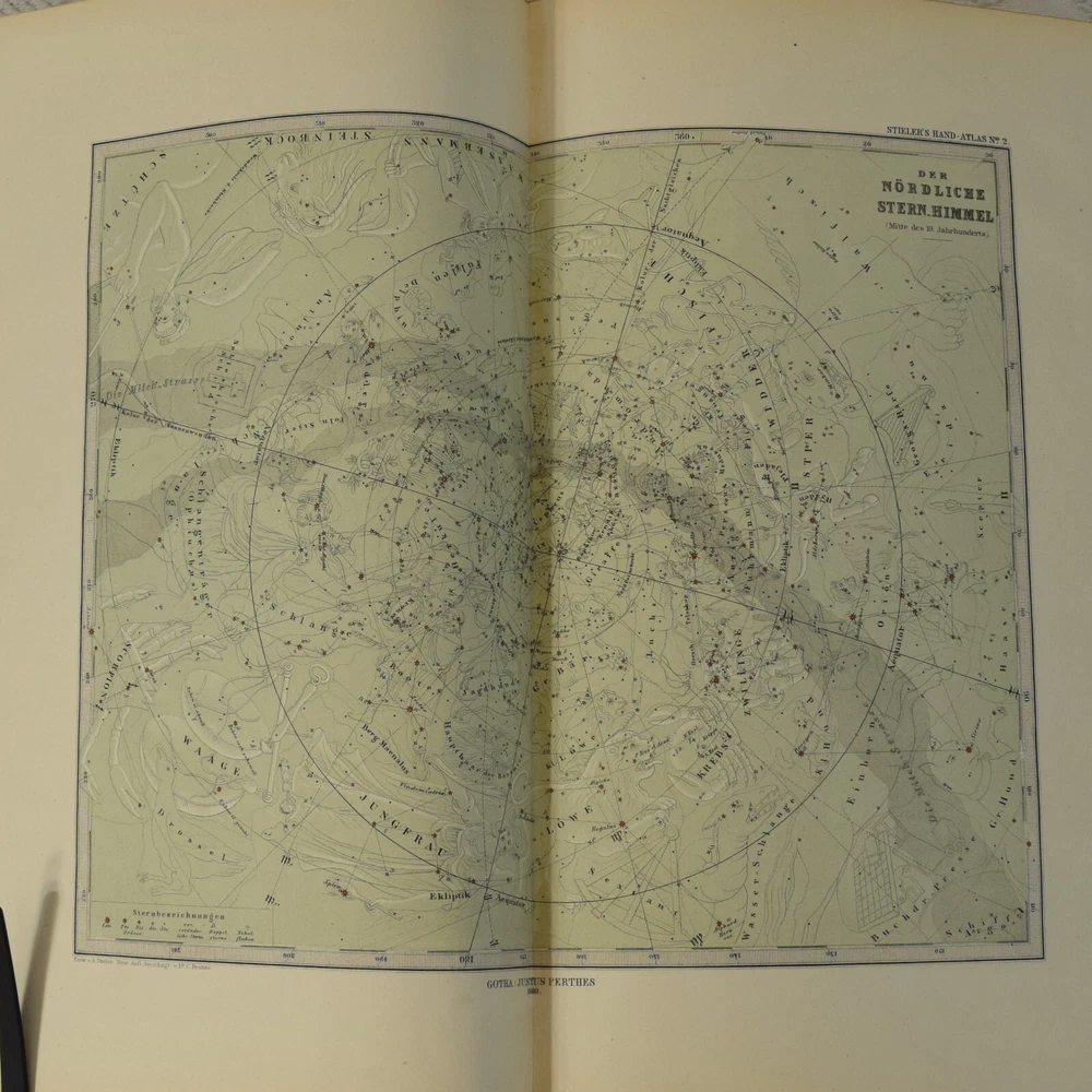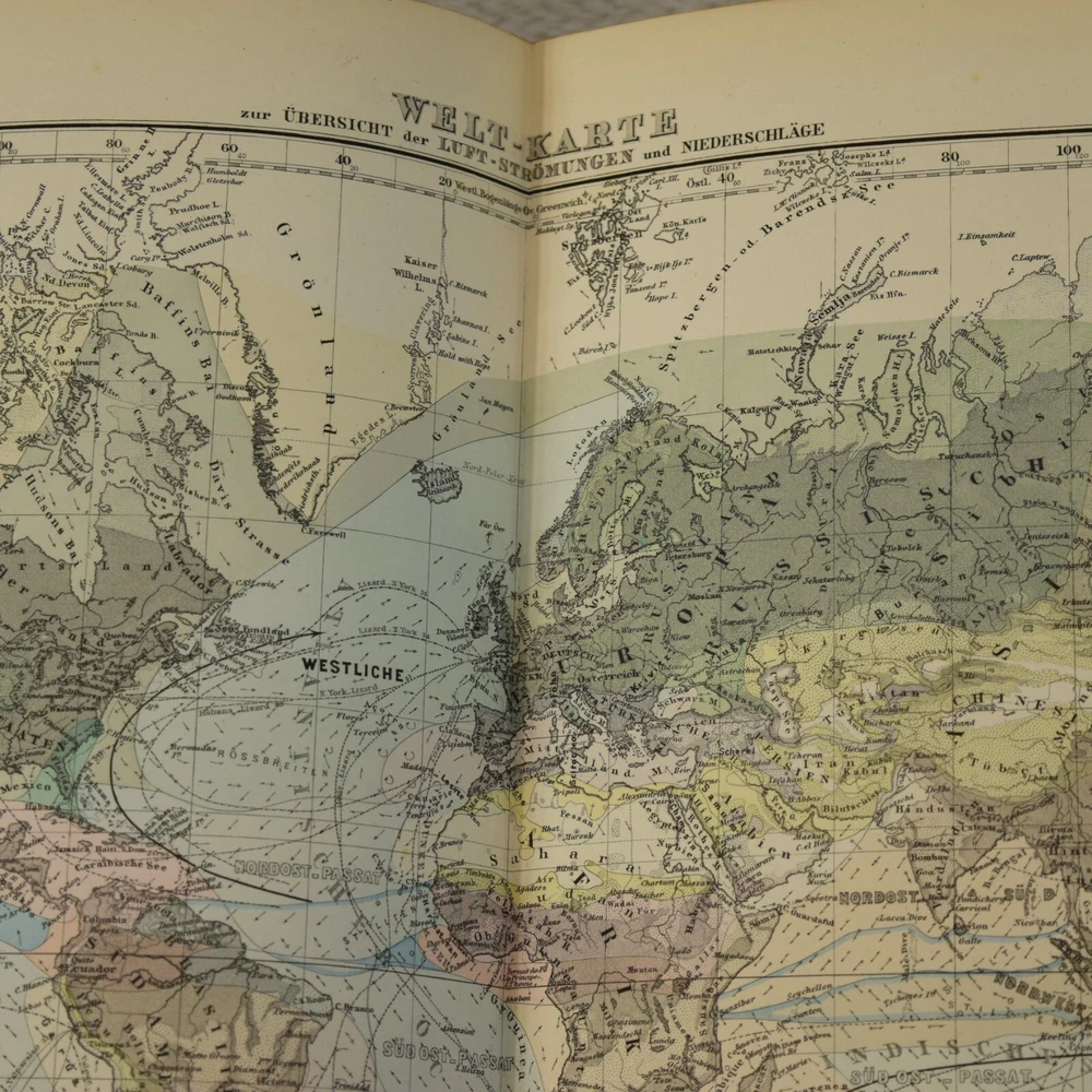 Antique A. Stieler’s HandAtlas 95 Maps Karten 7th Edition German Berghaus 1880 Amazing antique hand atlas with full size color maps and diagrams, written in German. 95 maps “Issued 1879-1882 under the direction of Hermann Berghaus, Vogel and Hermann Habenicht (1844–1917). Although the printing industry had already changed to lithography for some time, some maps in Stieler's Atlas were still reproduced by copper-plate printing on hand presses with hand colouring into the 1890s”. Richter Bros. Binders 294 West Water Street Milwaukee, Wisconsin Complete. Pages are in excellent condition, bright colors and print, little to no distressing. Cover is disintegrating and tattered; in need of restoration. Colorant and finish is rubbing off into powder. Measures 20” x 13” x 7” *Resale Holy Grail* is all about reducing waste. All items will be shipped in recycled packaging when possible. C2 #vintage #antique #book #leatherboundbook #atlas #worldatlas #artscrafts #maps #oldmaps #leatherbound #german