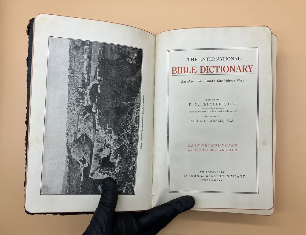Antique International Bible Dictionary Self-Pronouncing 500 Illustrations & Maps Antique Leather cover, published in 1912 by John C Winston Co. Tabbed pages, spine sound. General wear on the edges; overall great condition. Based on WM Smith’s One Volume Work. Please see photos. Packaged with care and shipped with USPS media mail.